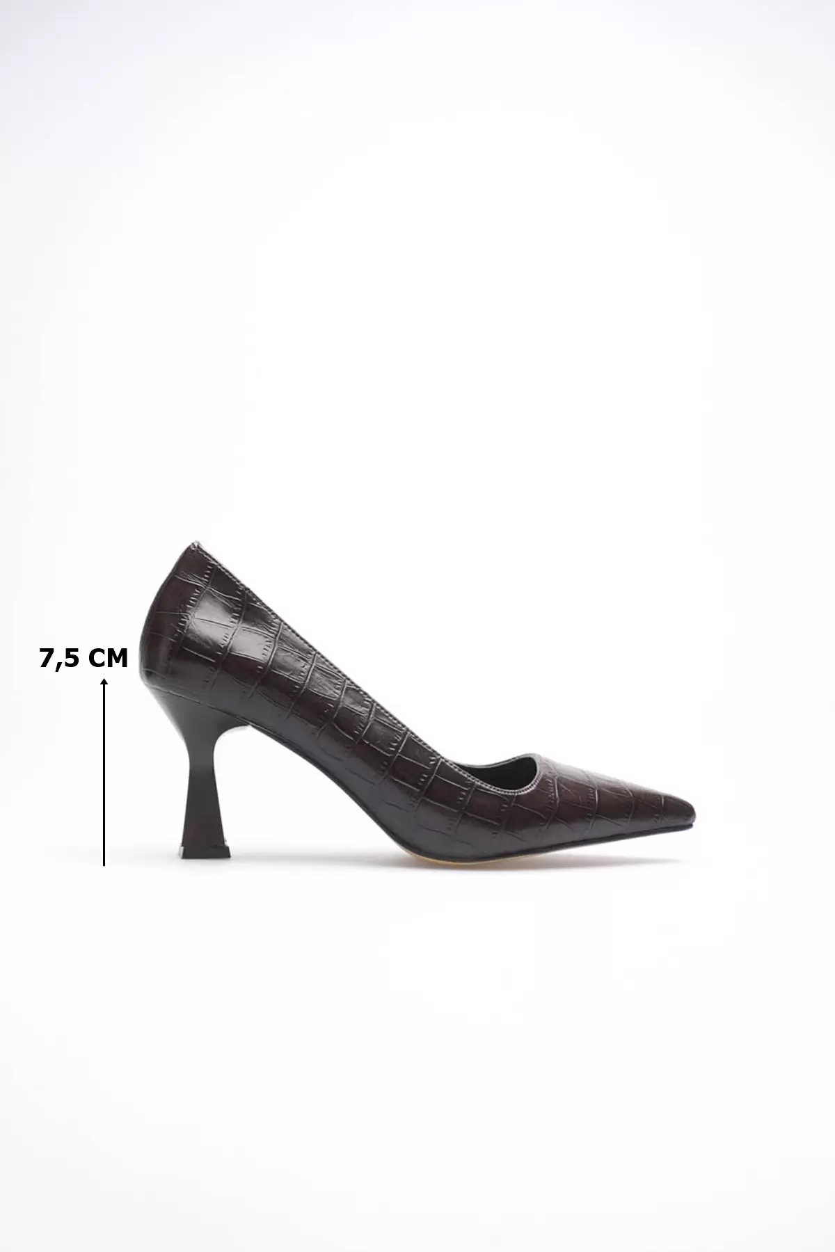 Acı Kahve Kroko Sivri Burun Orta Topuklu Kadın Stiletto TR20MS02G