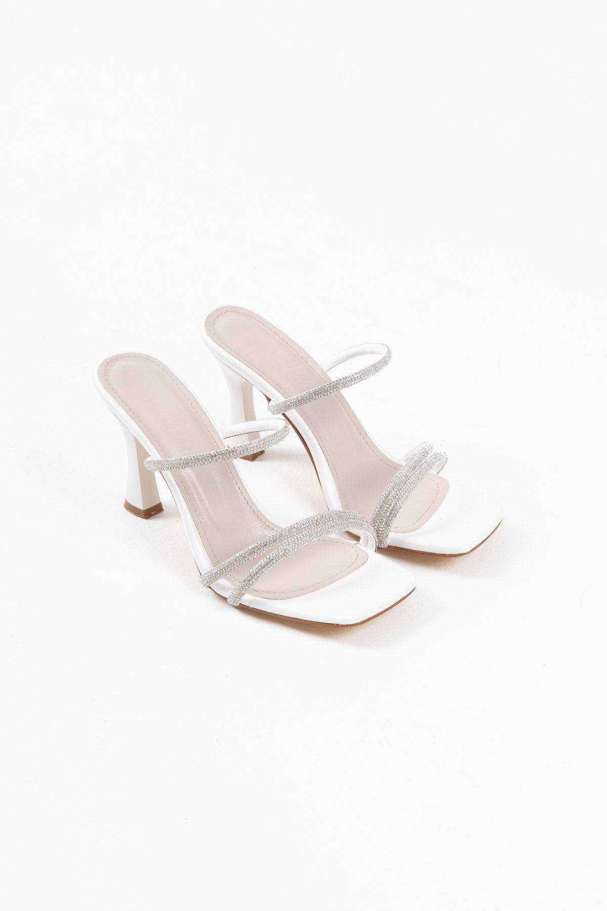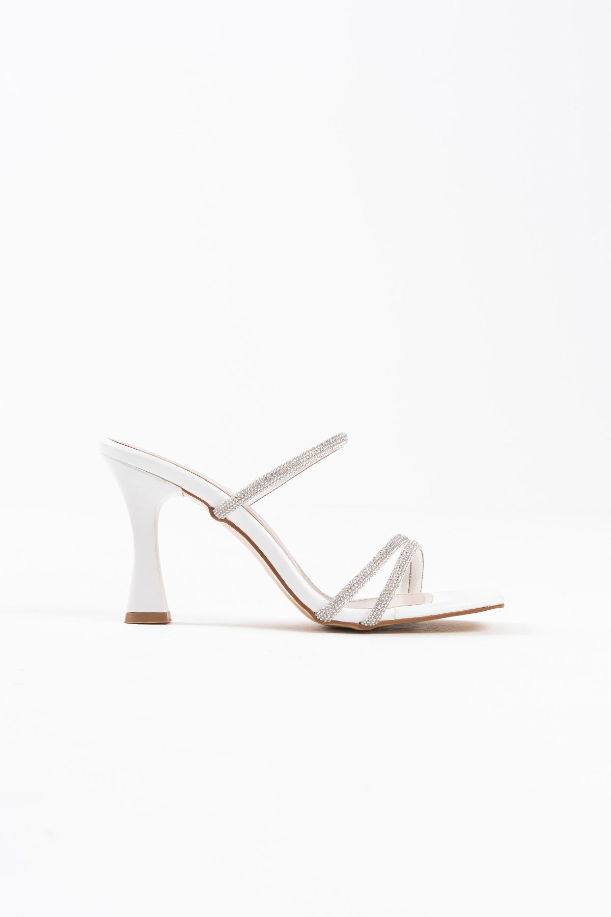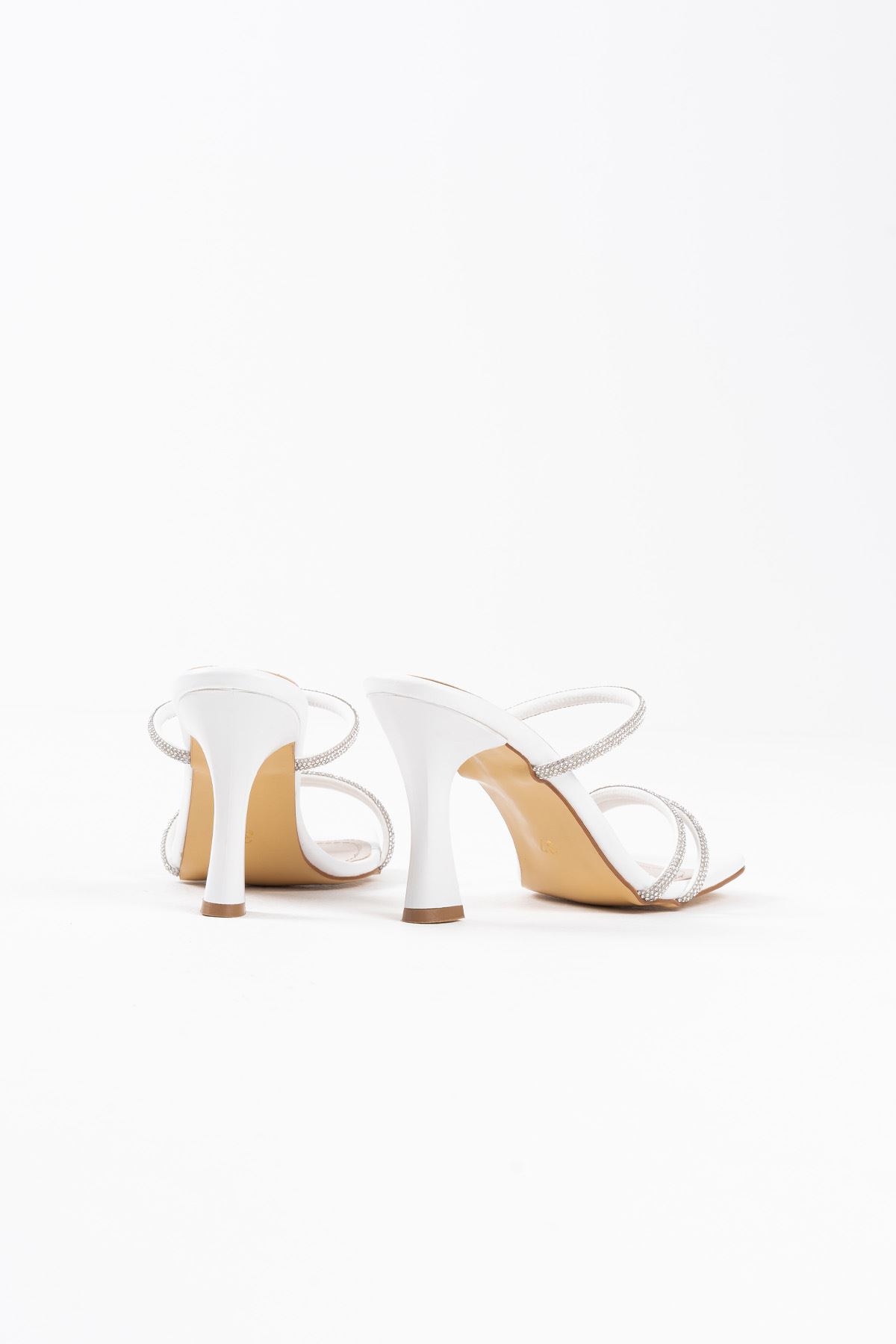 Beyaz Taşlı İnce Bantlı Kadın Topuklu Terlik TR20MY01B