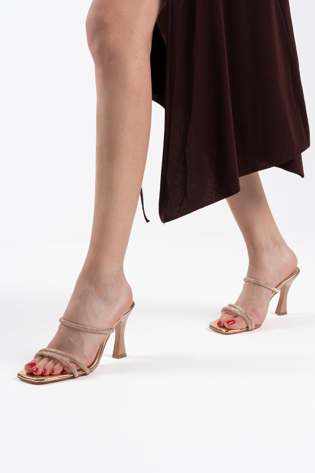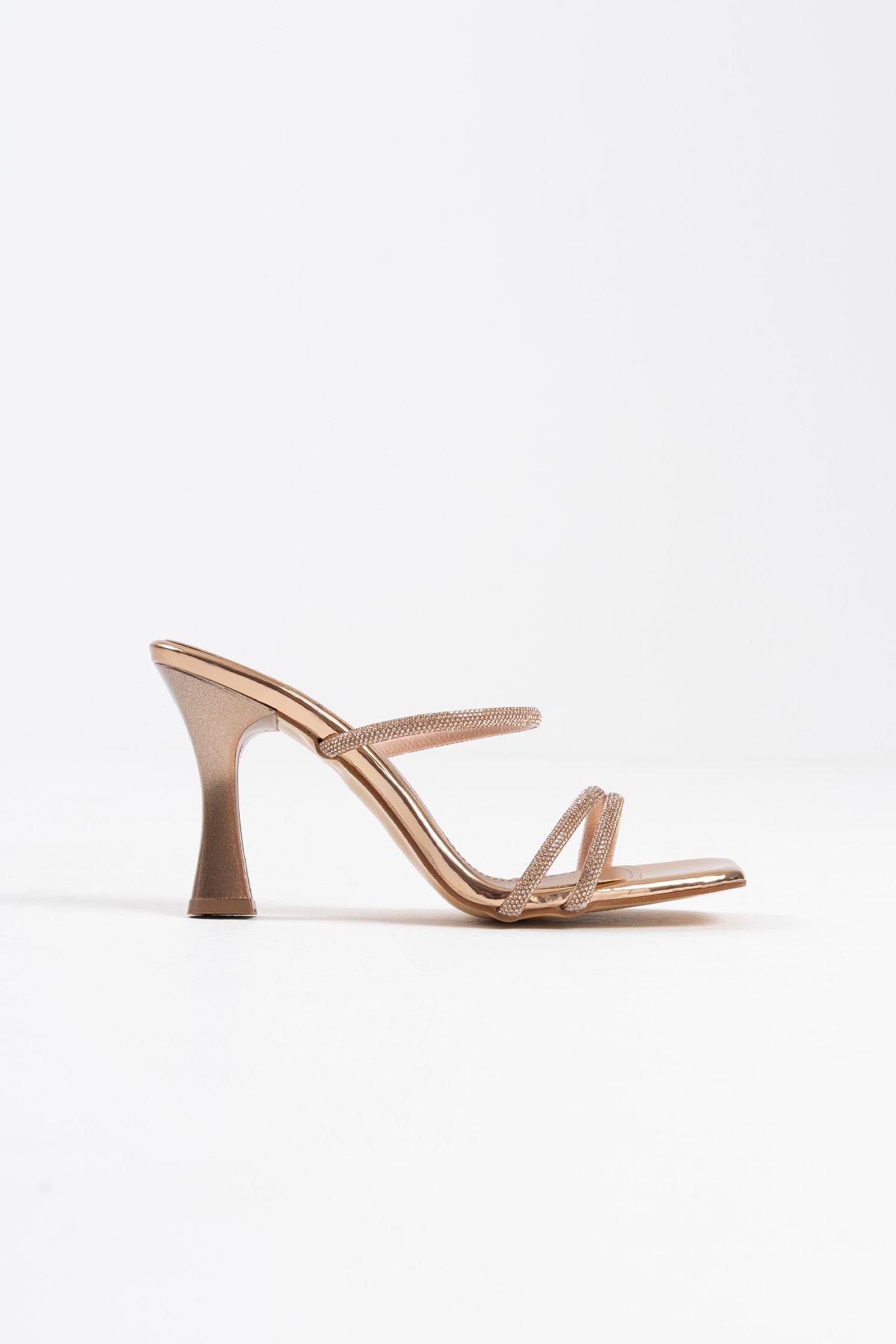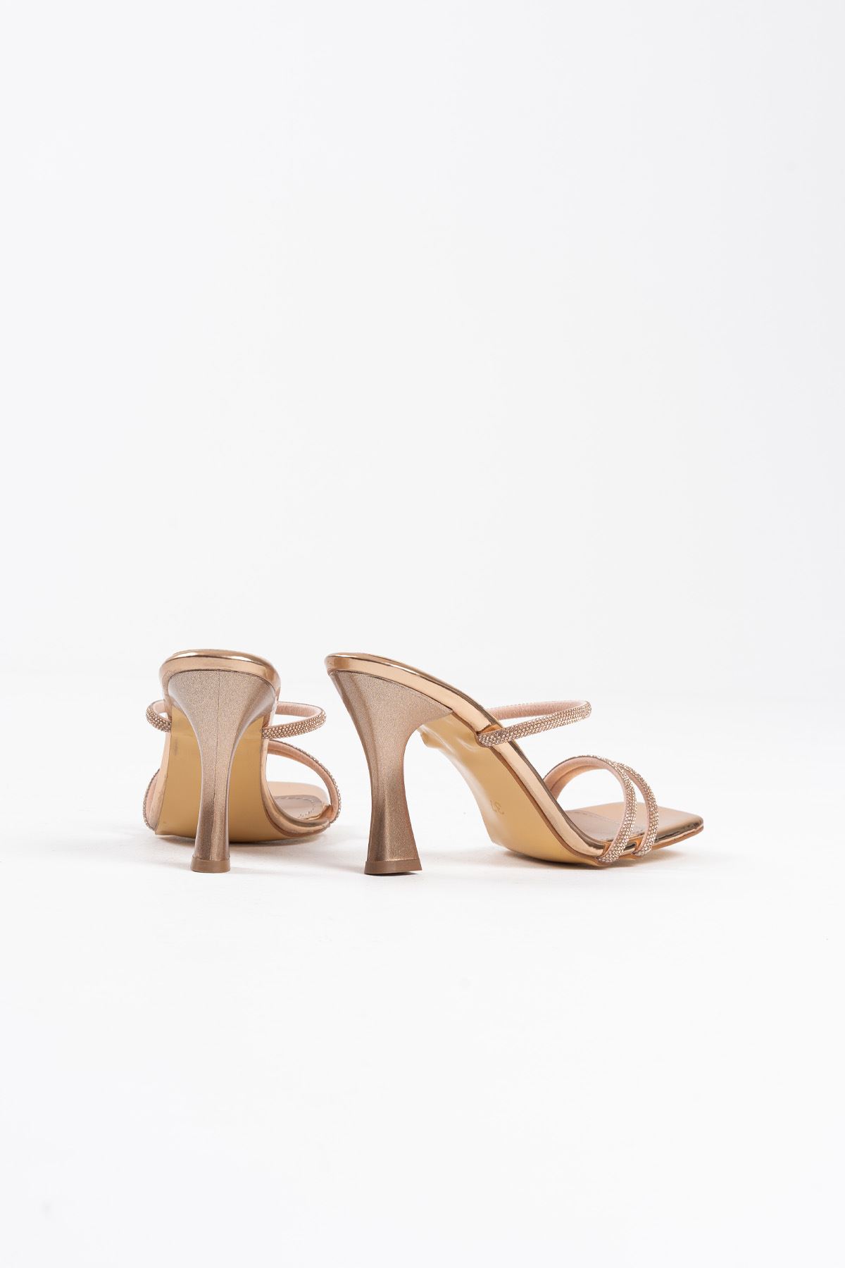 Rose Gold Taşlı İnce Topuklu Abiye Sandalet TR20MY15G