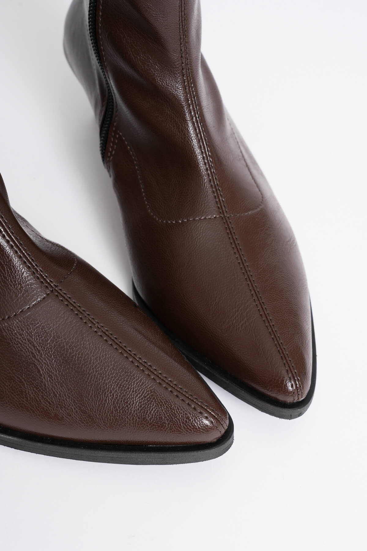 Acı Kahve Kalın Topuklu Streç Bot TR08MK01C