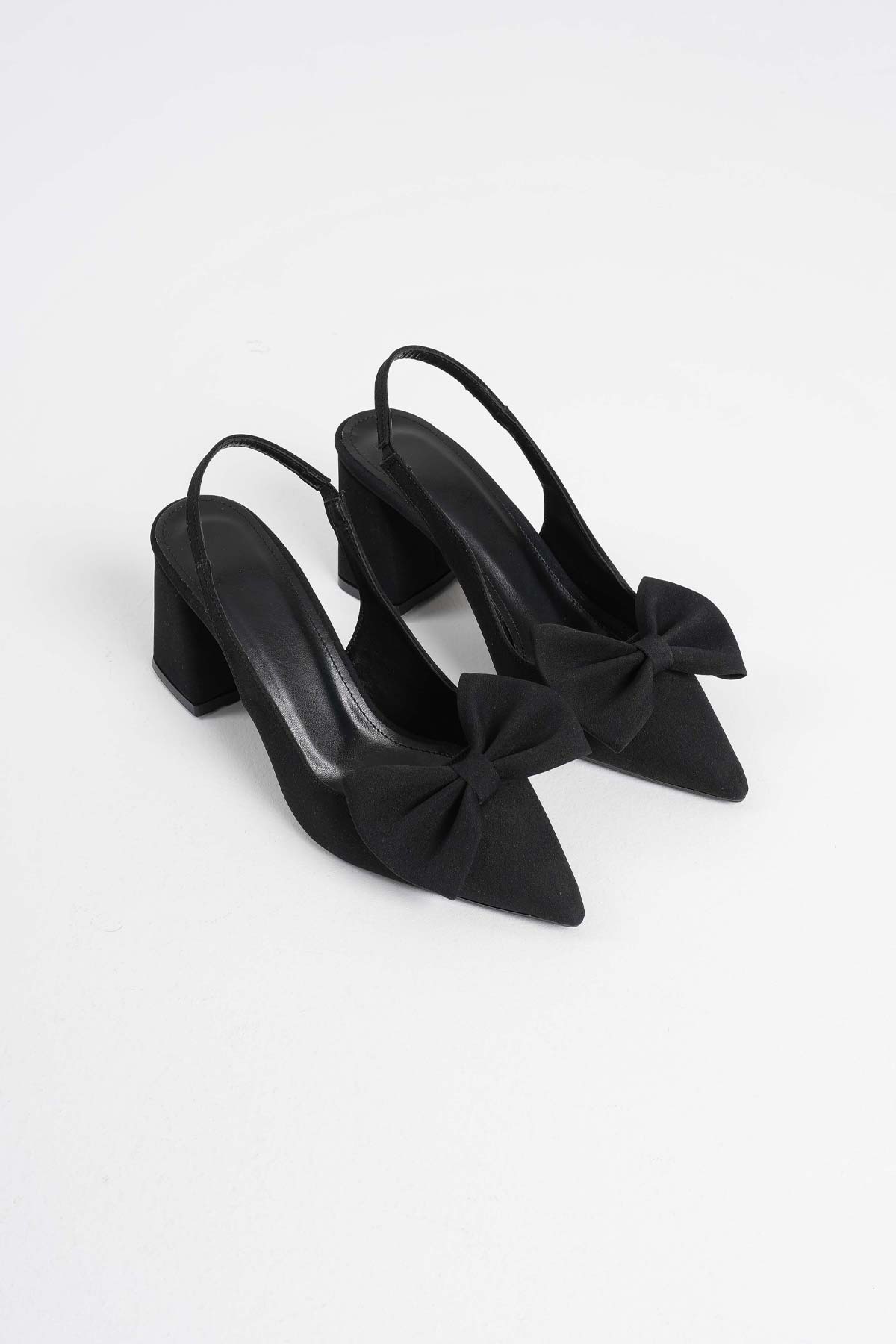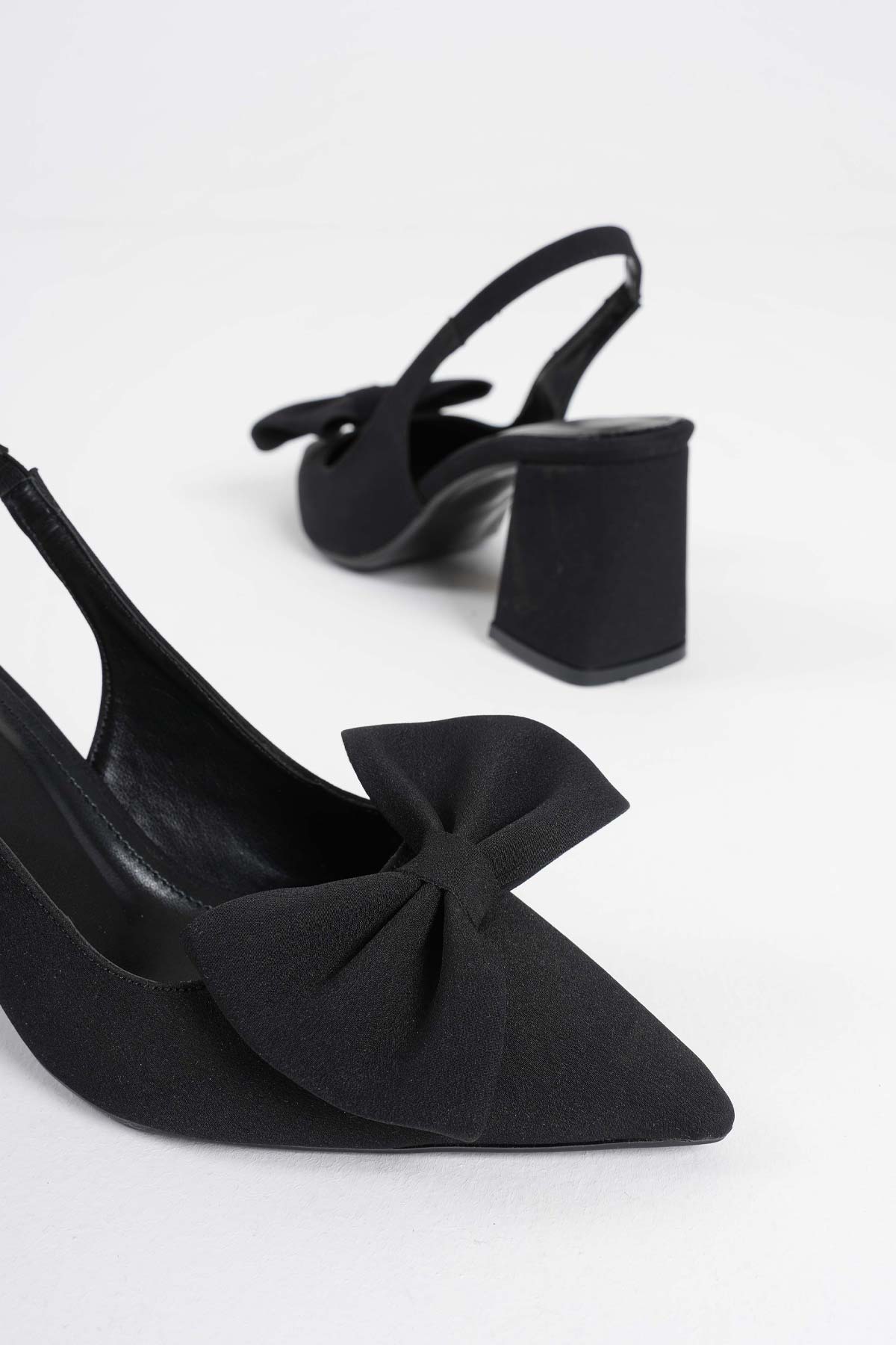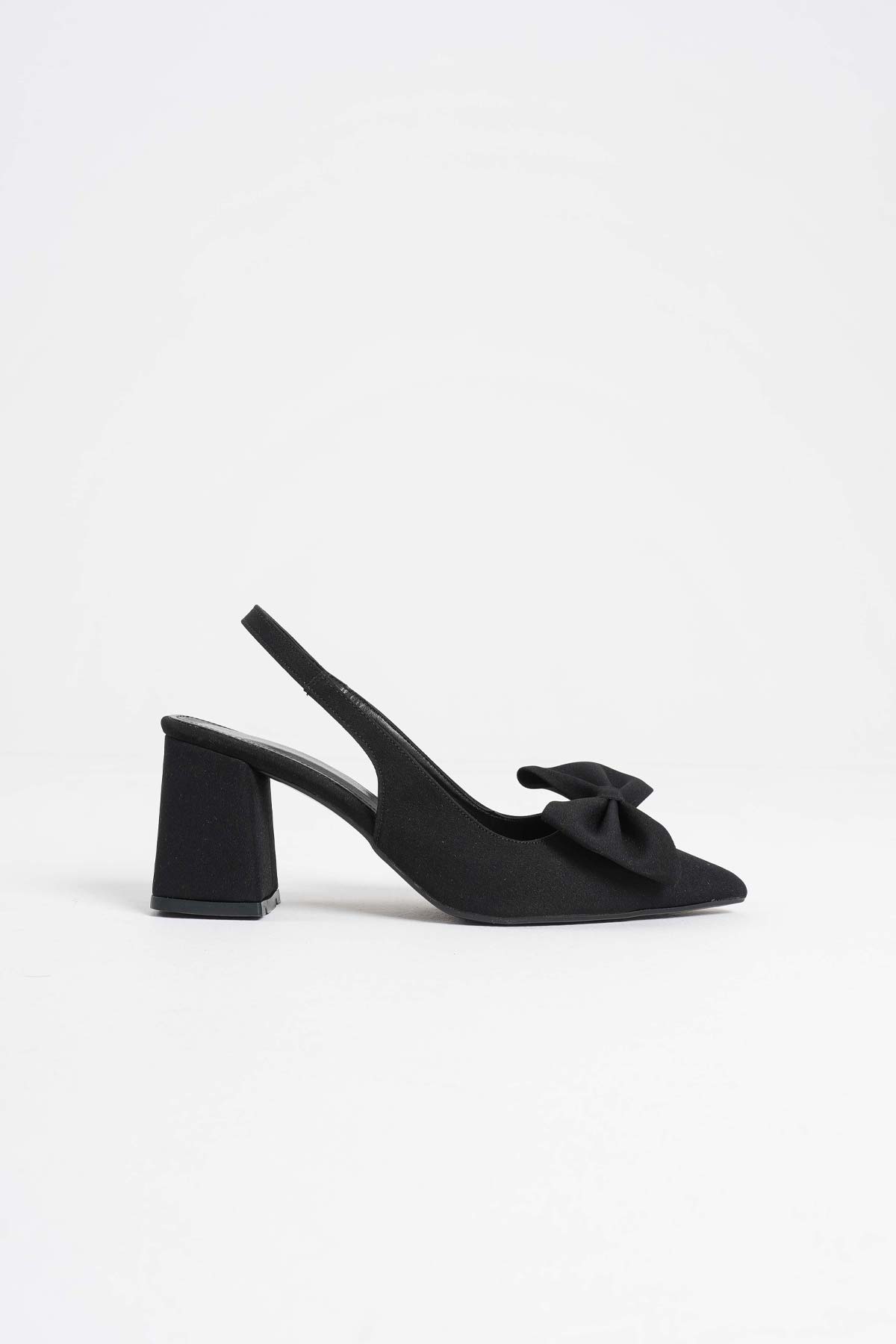 Kadın Siyah Fiyonklu Saten Slingback Topuklu Ayakkabı TR40MS01A