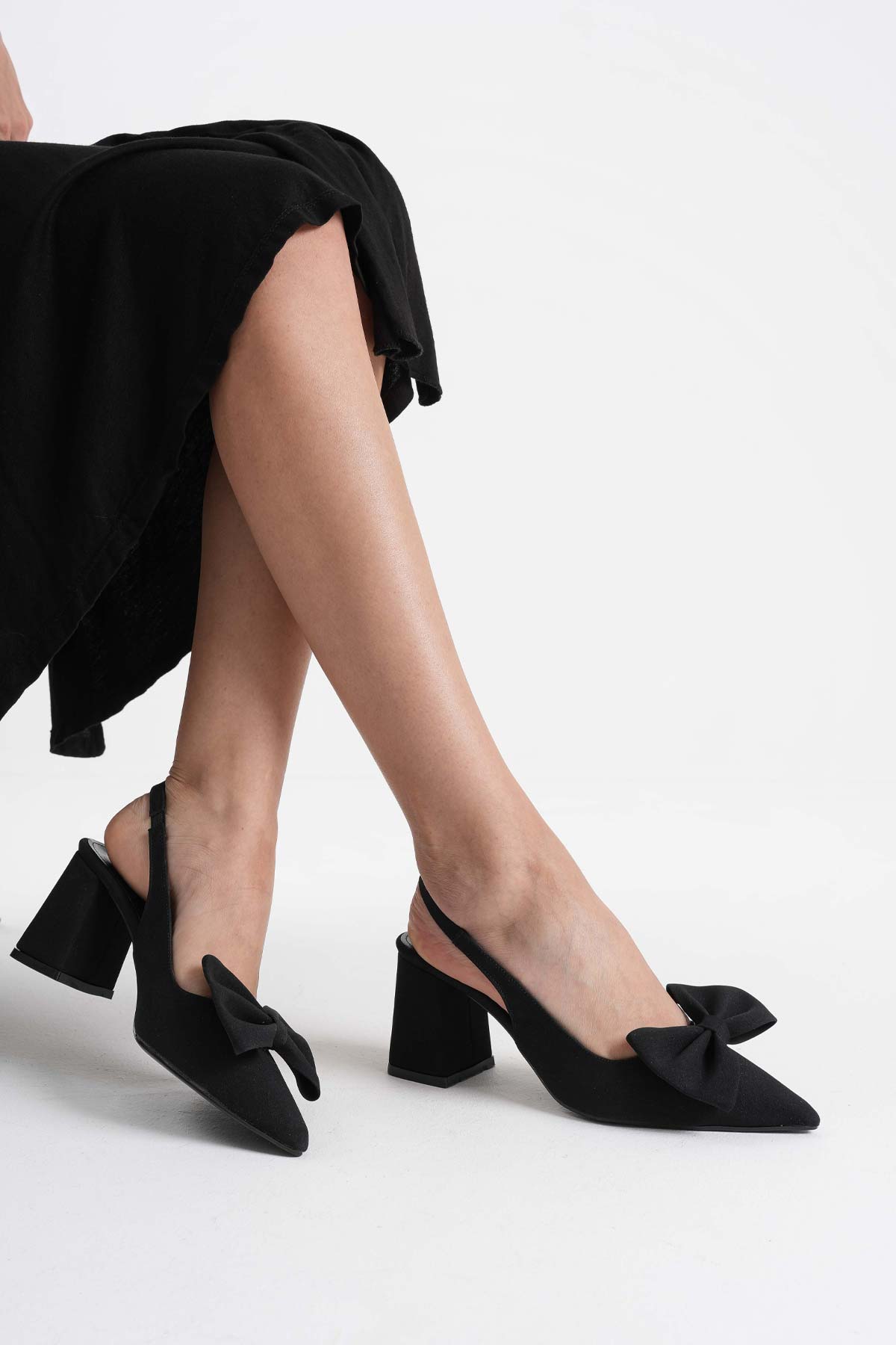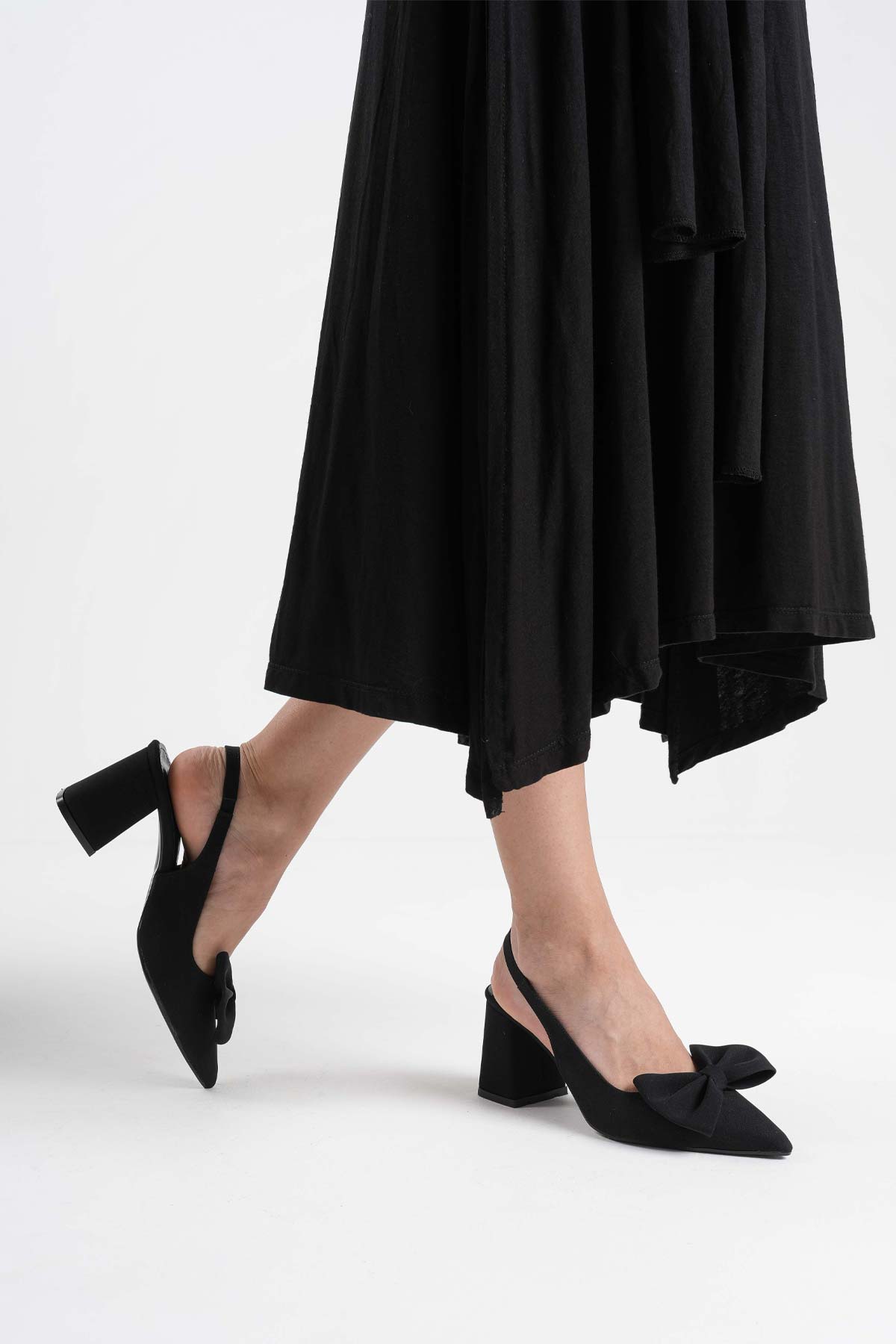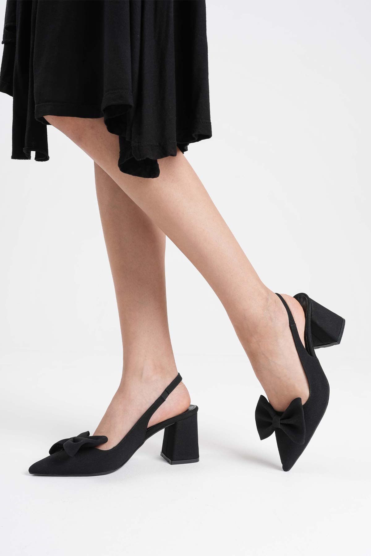 Kadın Siyah Sivri Burun Slingback Kısa Topuklu Ayakkabı TR20MS04A