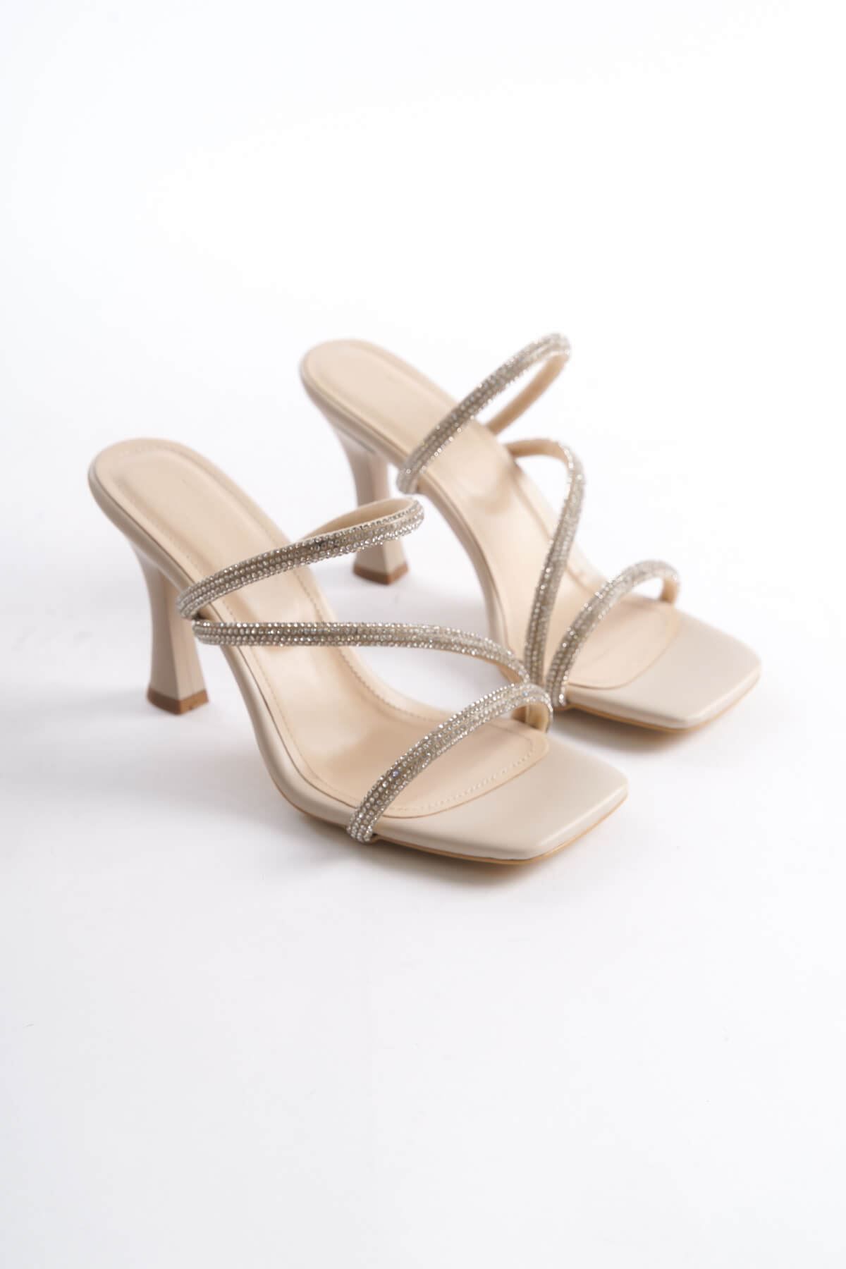 Nude Taşlı İnce Bantlı Kadın Topuklu Terlik TR20MY01D