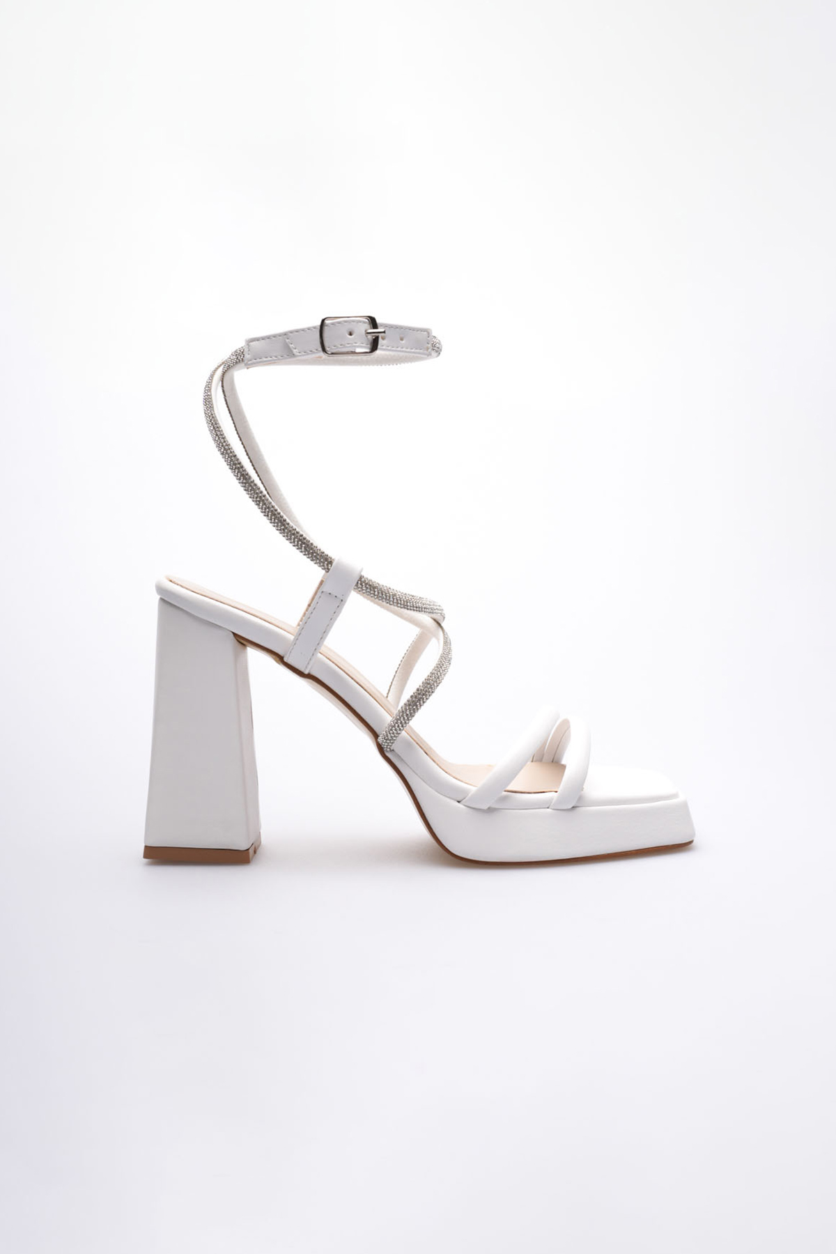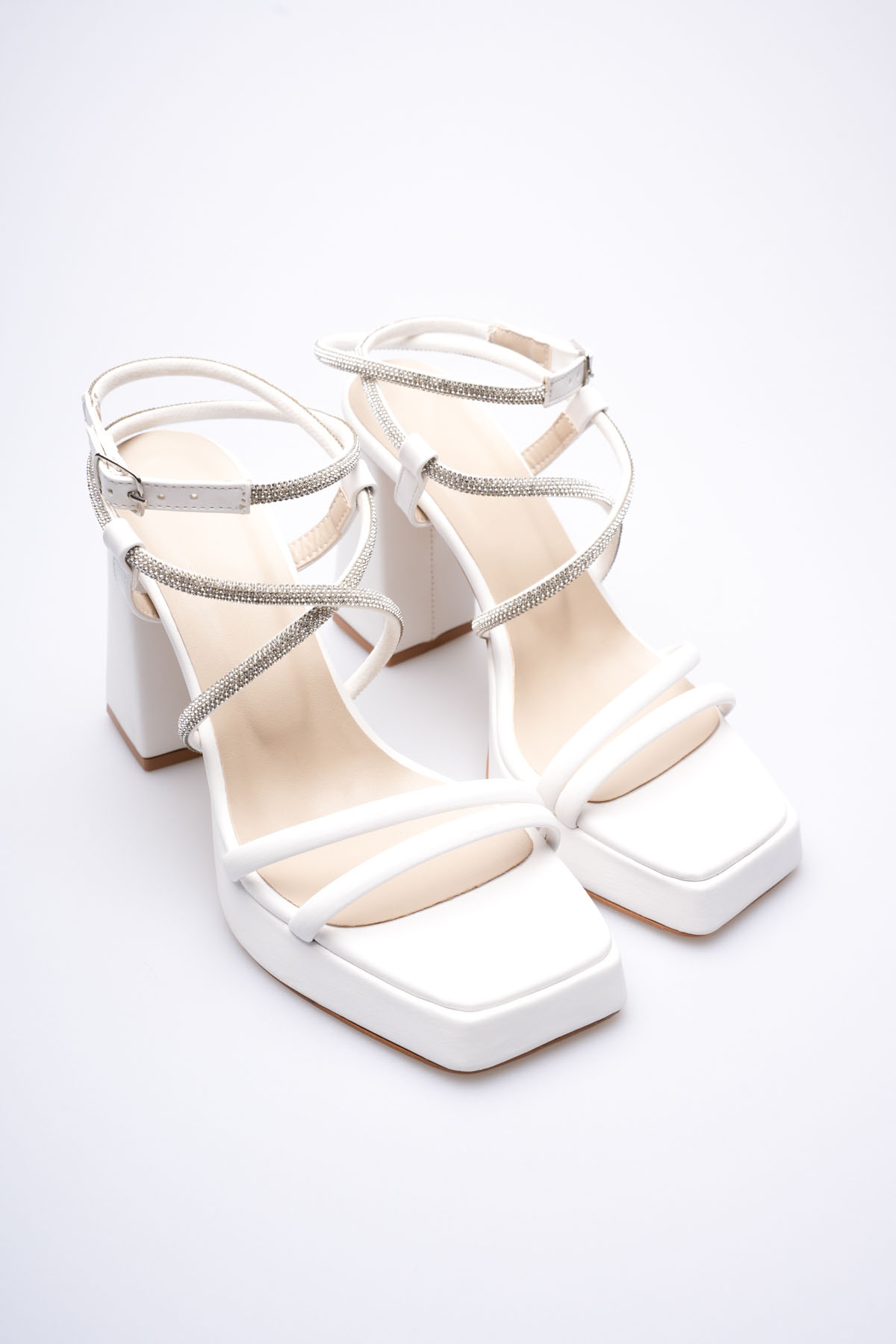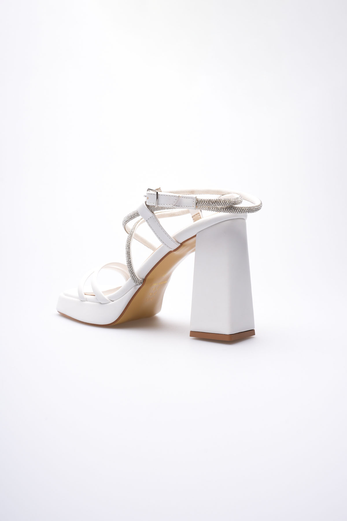 Kadın Beyaz Taş Detaylı Kalın Topuklu Şık Sandalet TR20MY26B