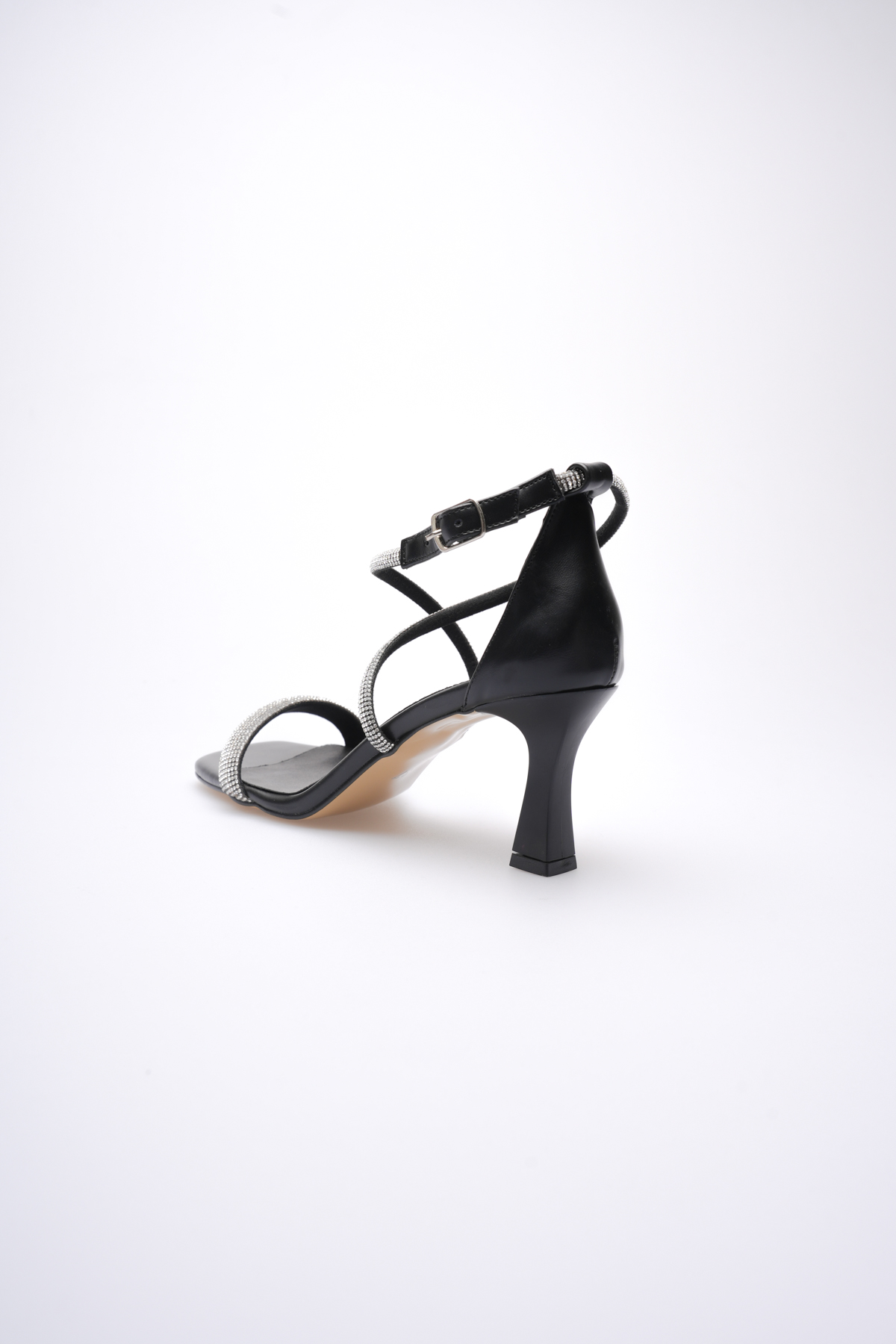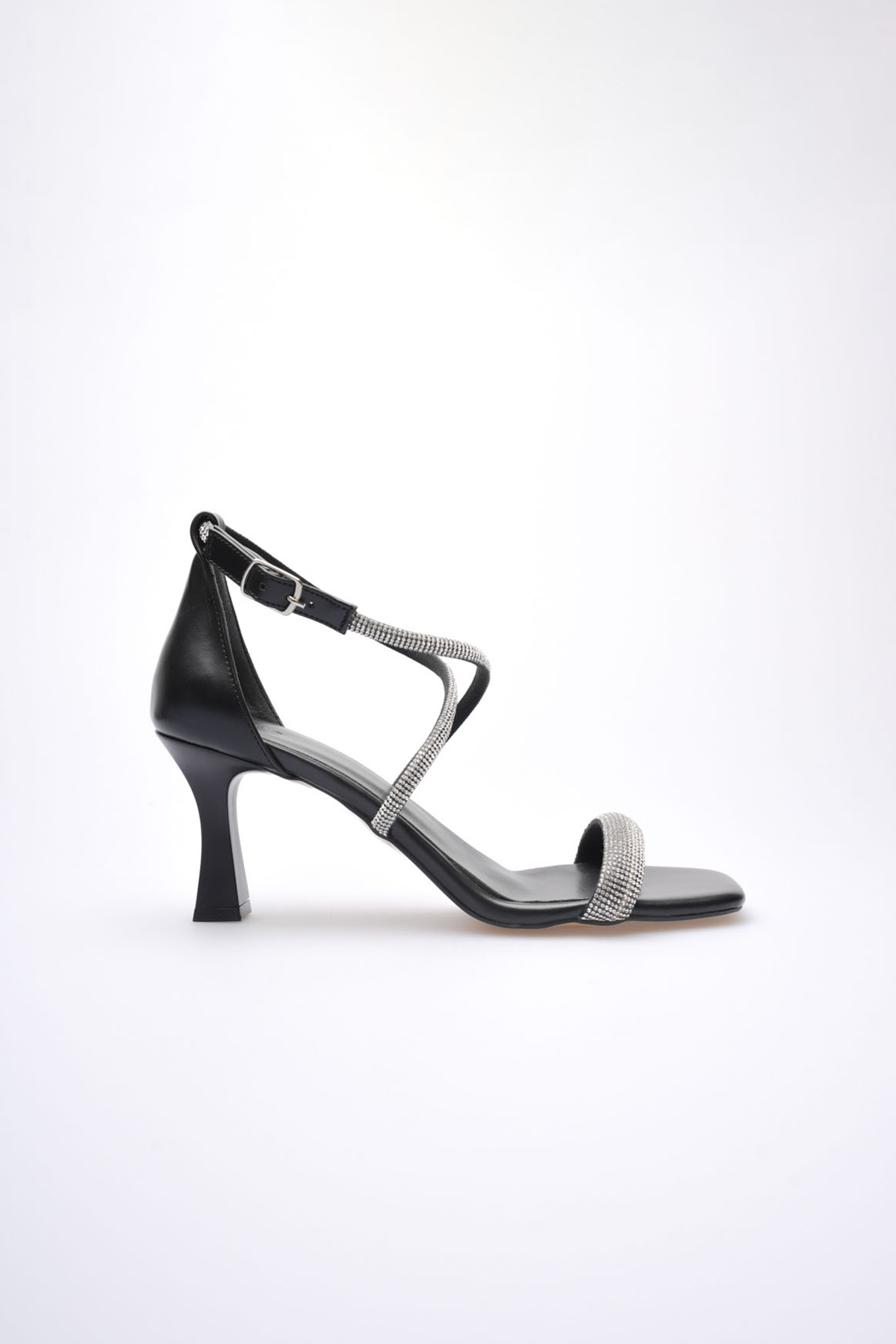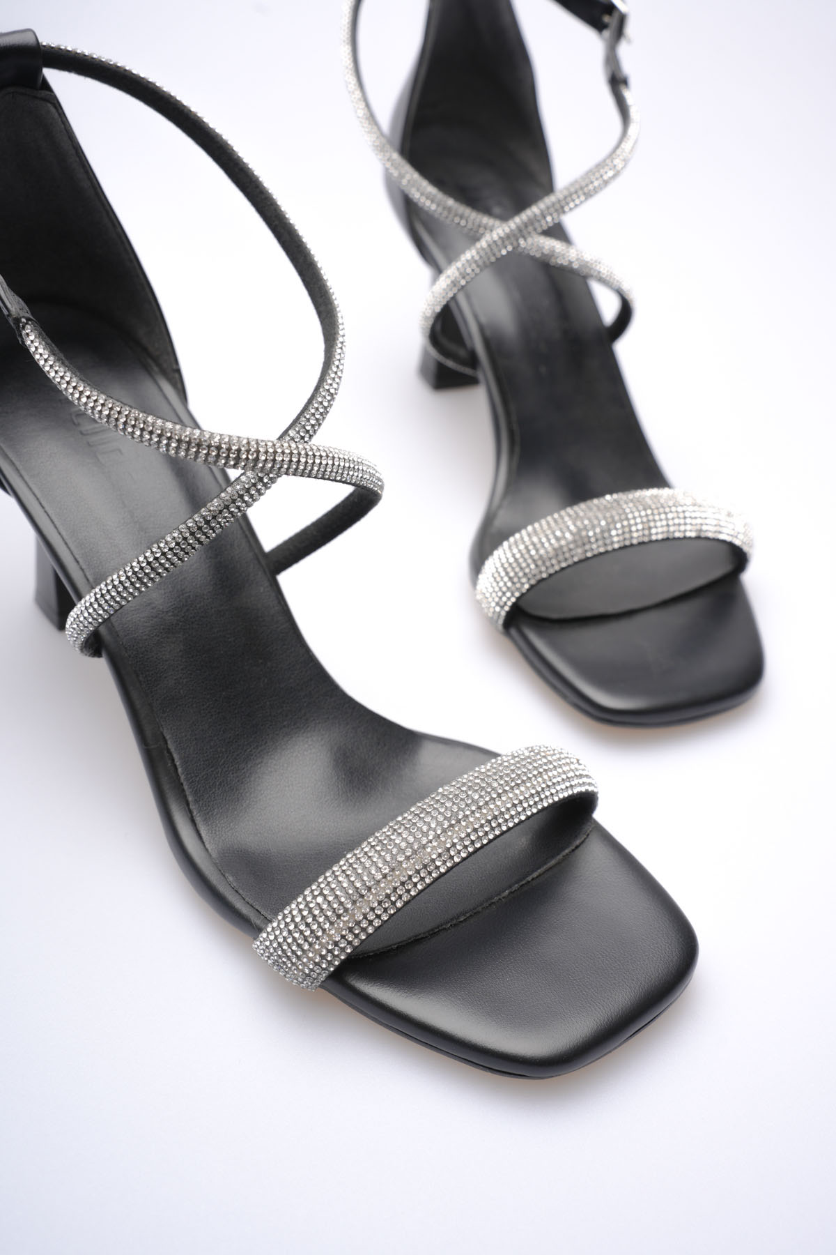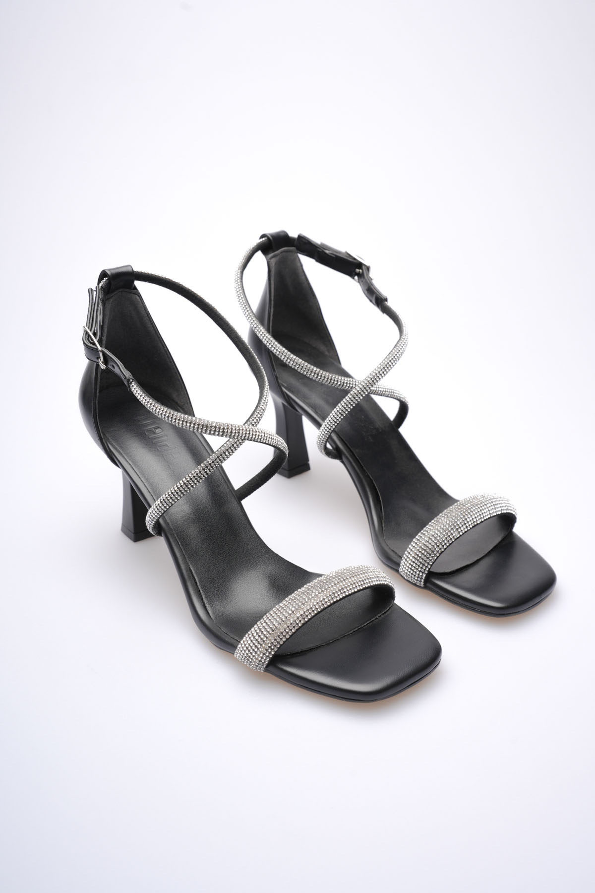 Siyah Taşlı İnce Bantlı Kadın Topuklu Terlik TR20MY01A
