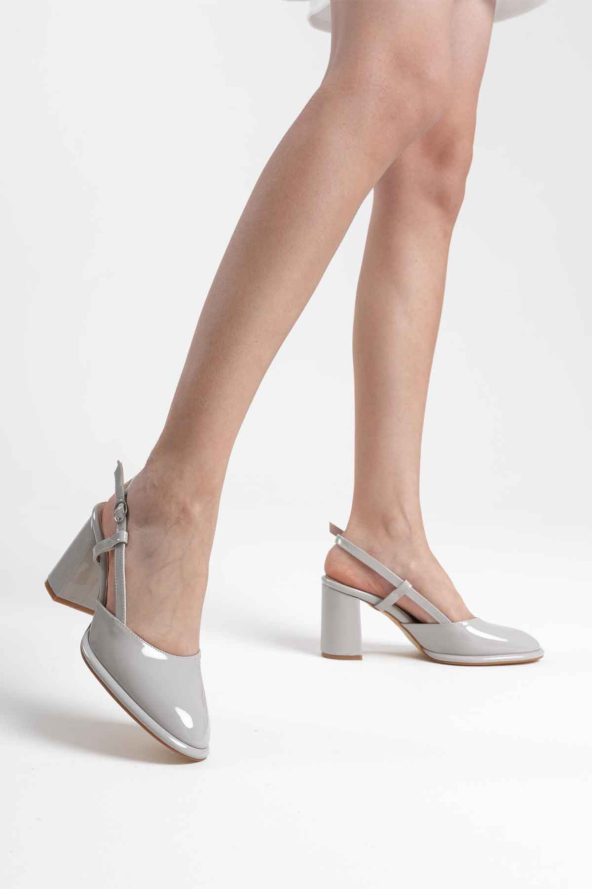 Gri Rugan Kadın Topuklu Ayakkabı TR18MS18D