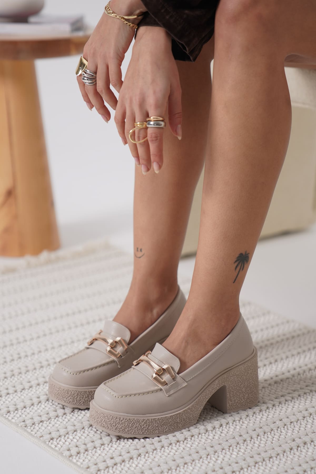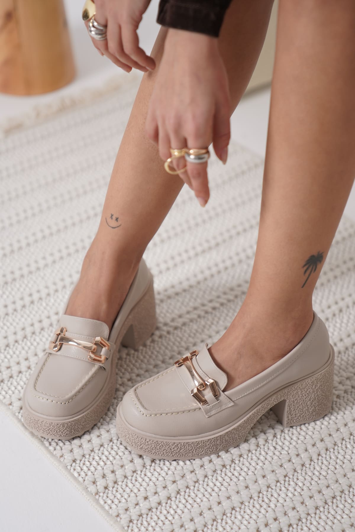 Kadın Bej Bilekten Baretli Günlük Ayakkabı TR06MS01D