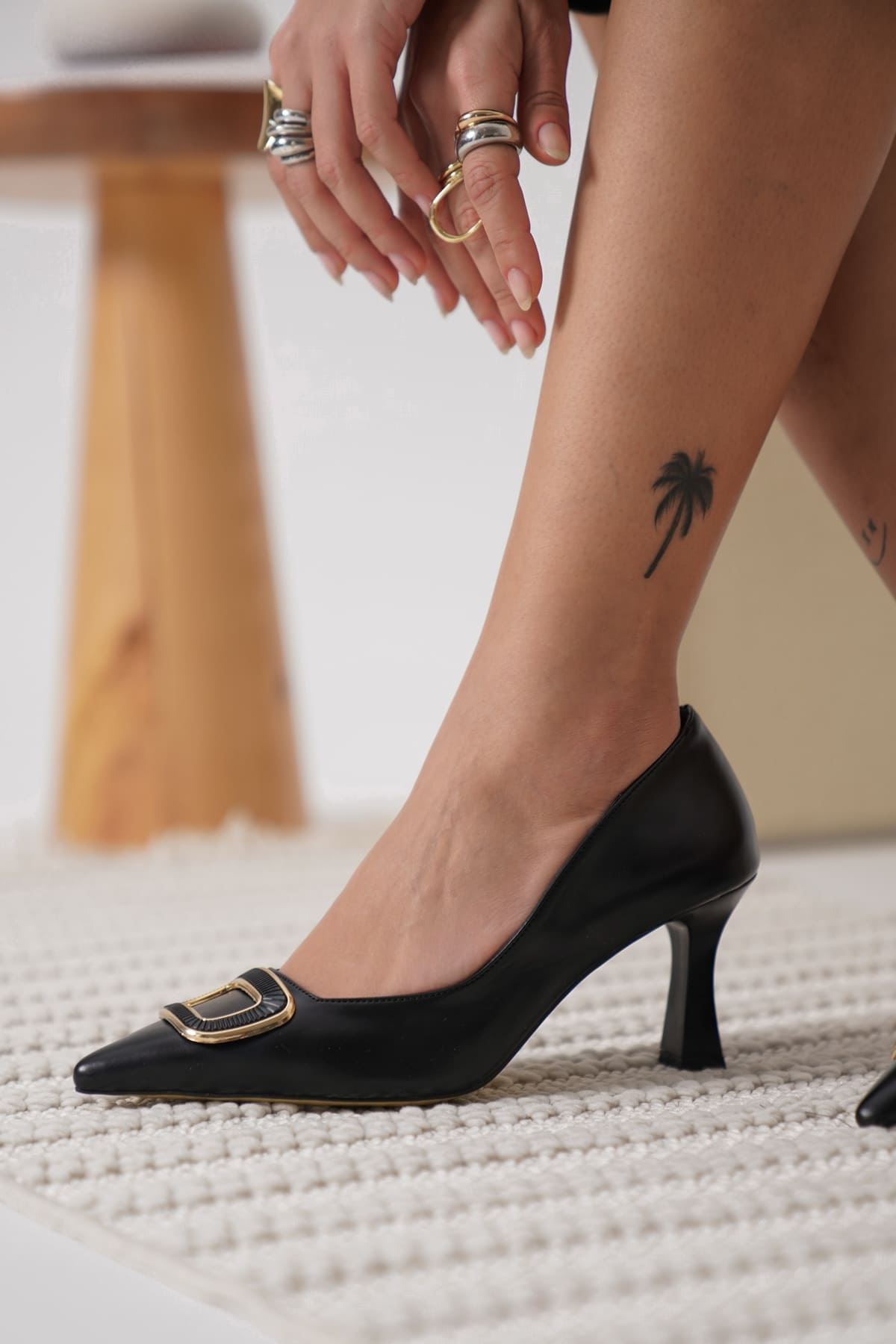 Siyah Özel Malzeme Kadın Topuklu Ayakkabı TR08MS40A