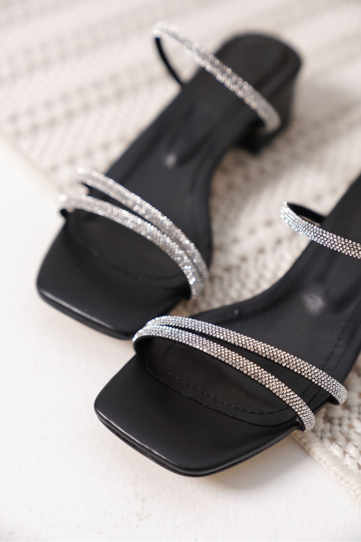 Siyah Taşlı İnce Bantlı Kadın Topuklu Terlik TR20MY01A