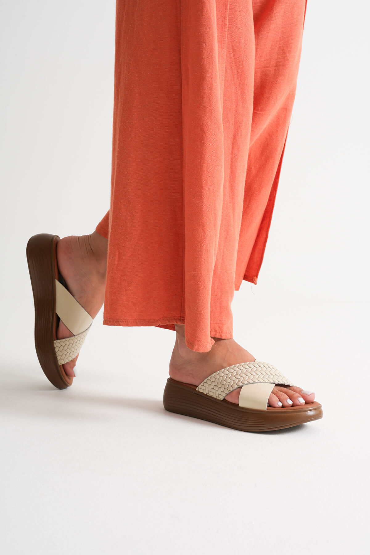 Acı Kahve Örgü Desenli Hakiki Deri Terlik TR31MY53K