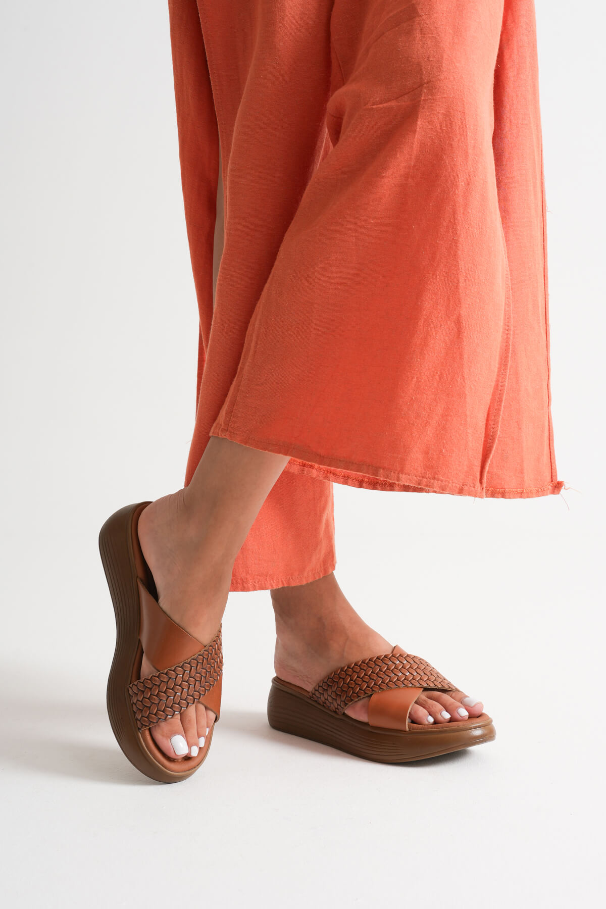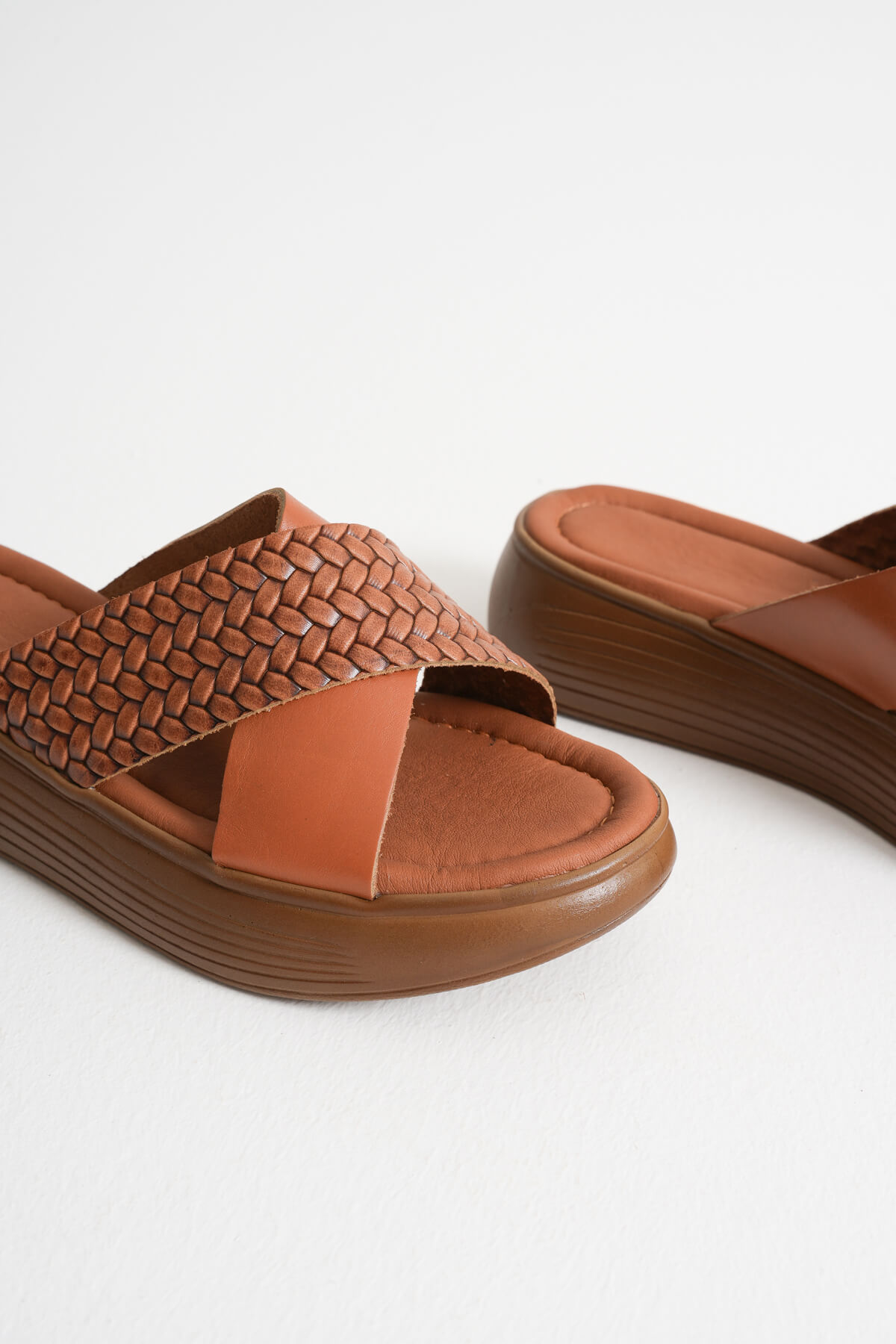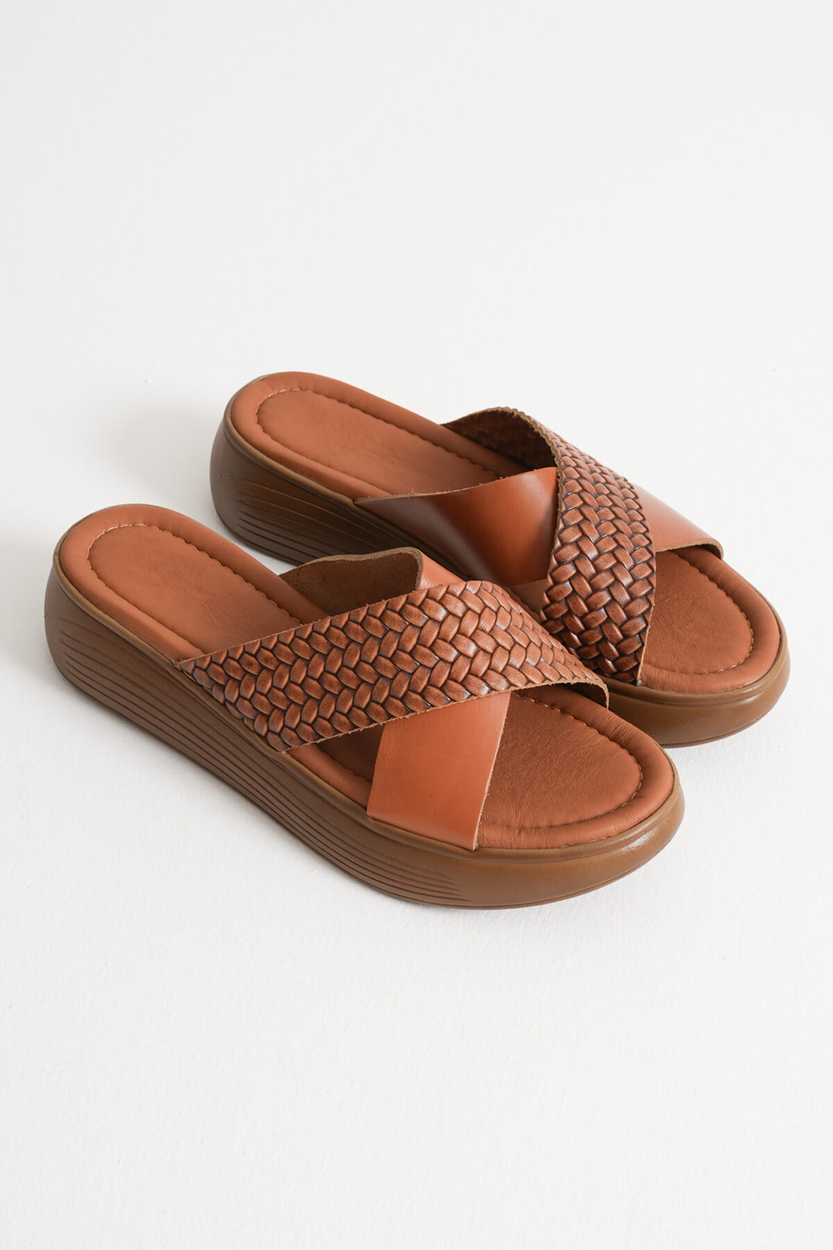 Taba Örgü Desenli Hakiki Deri Terlik TR31MY53L