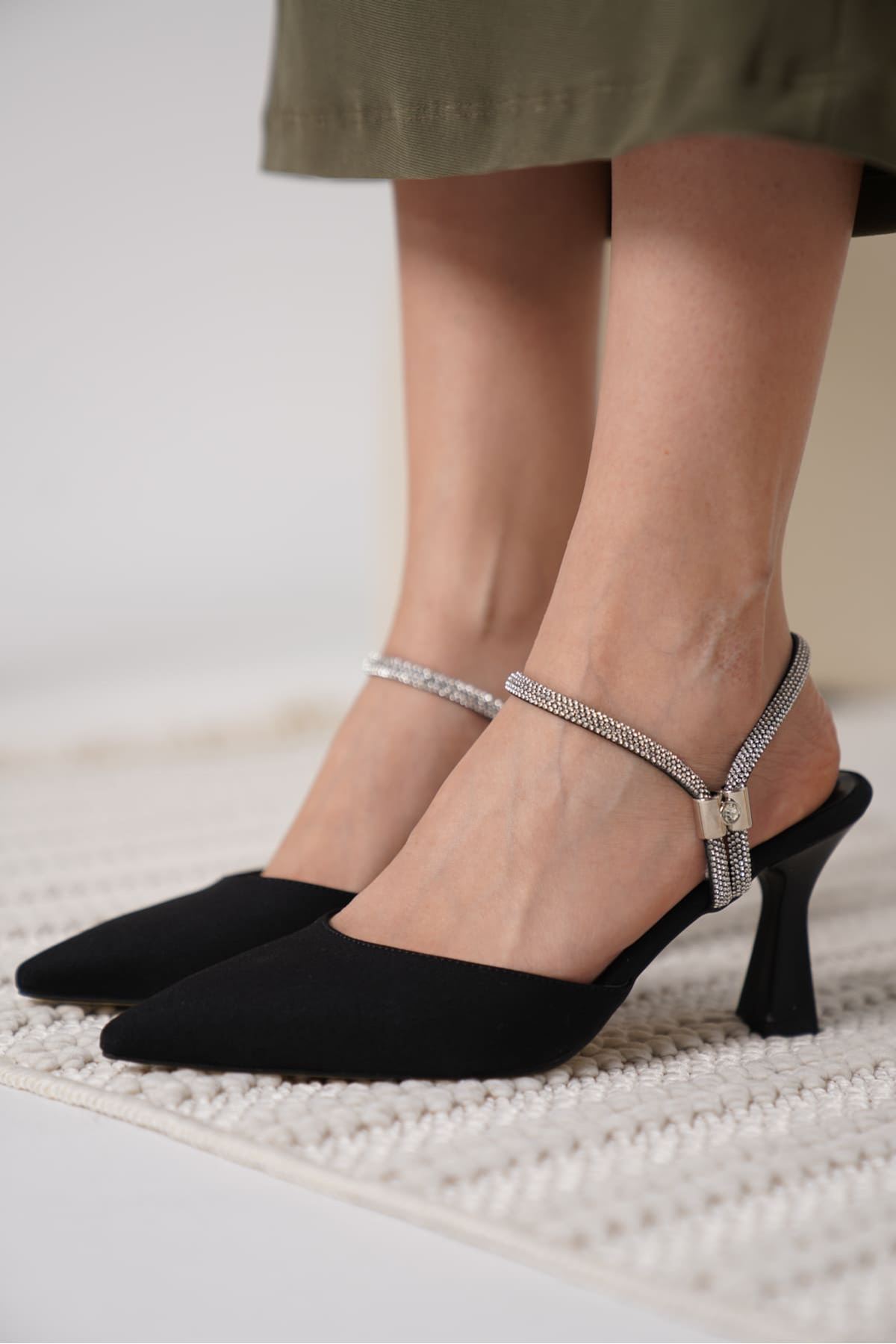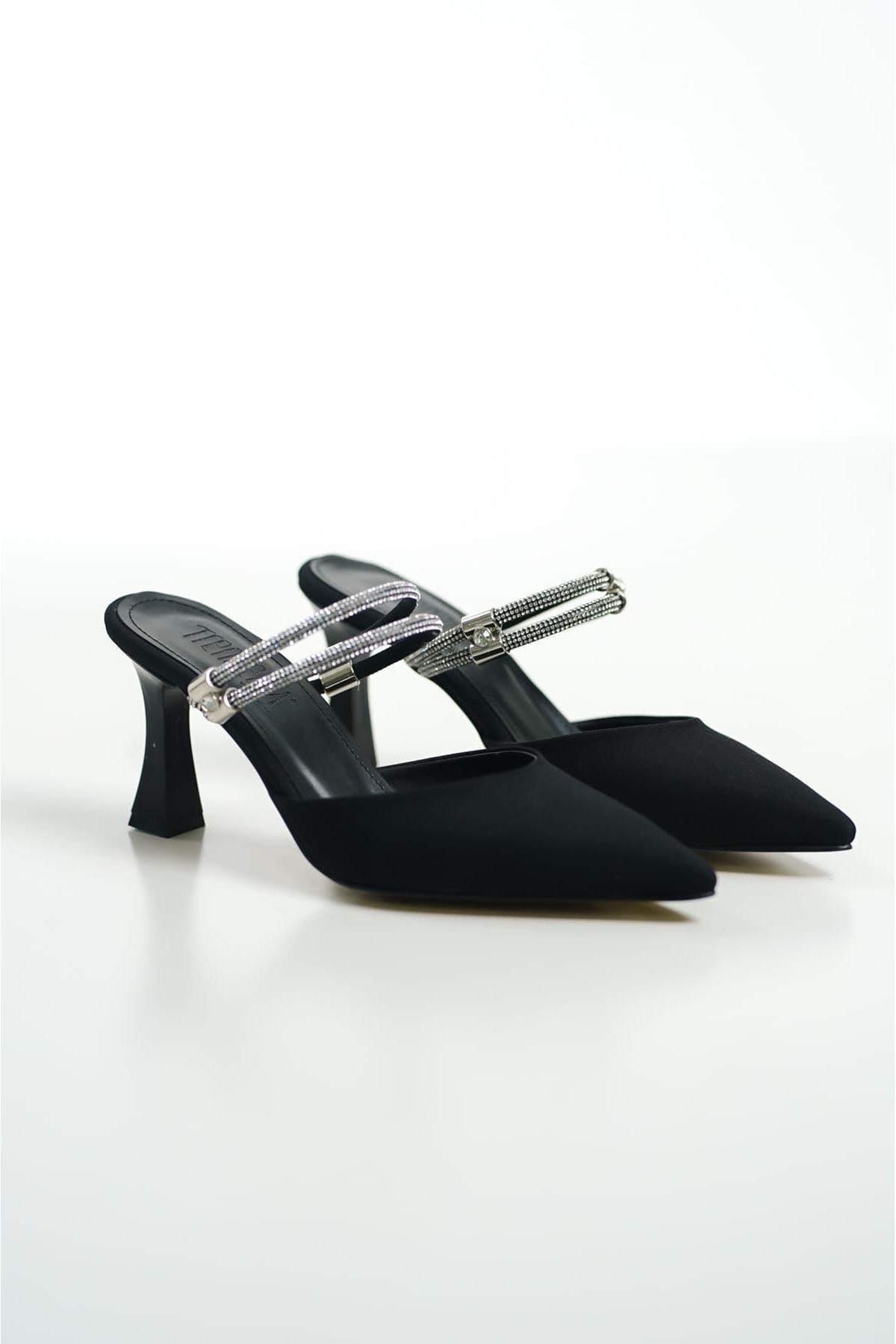 Kadın Taşlı Siyah Saten Topuklu Ayakkabı TR12MS04A