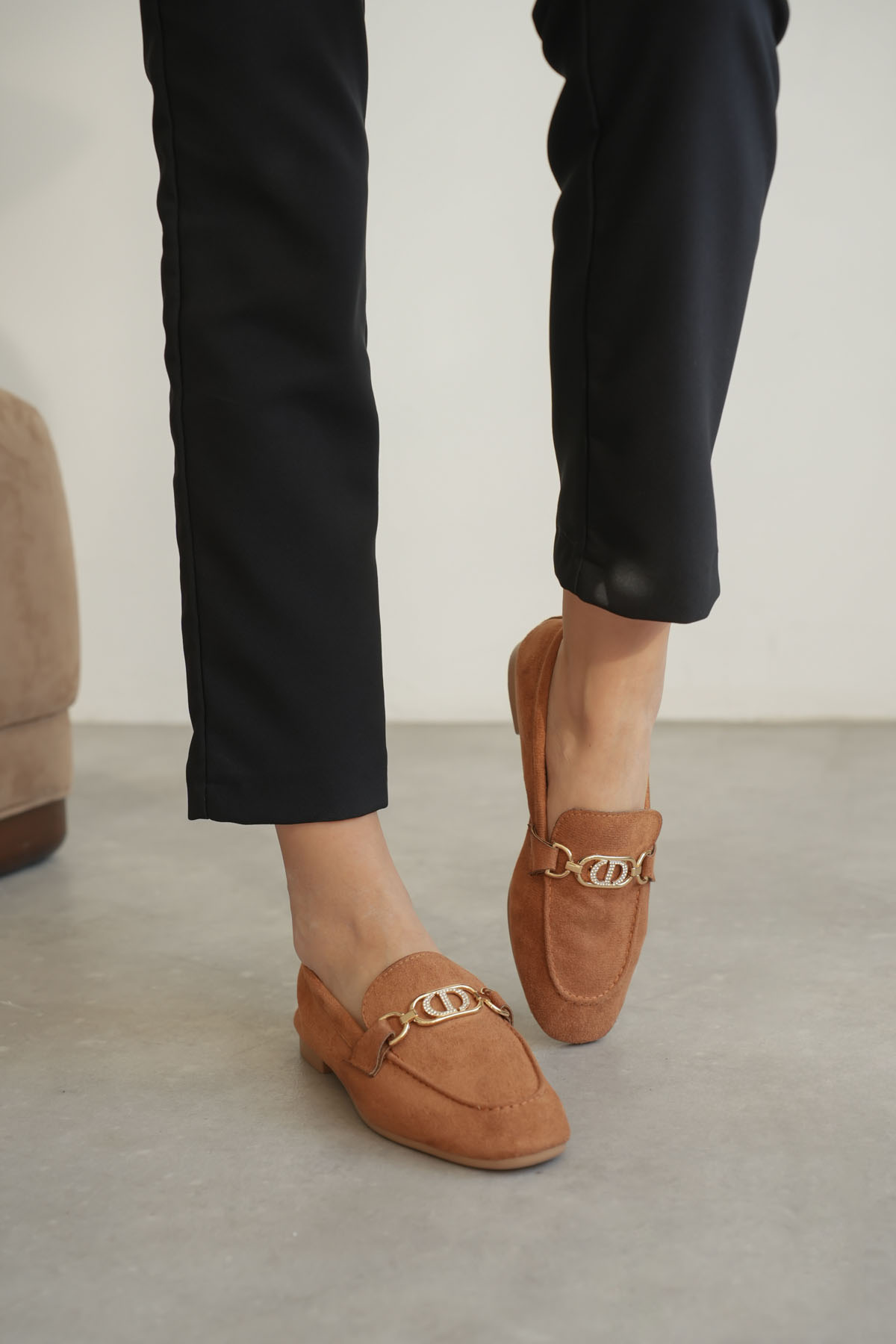 Toka Detaylı Bej Süet Günlük Loafer Ayakkabı TR10MS04D