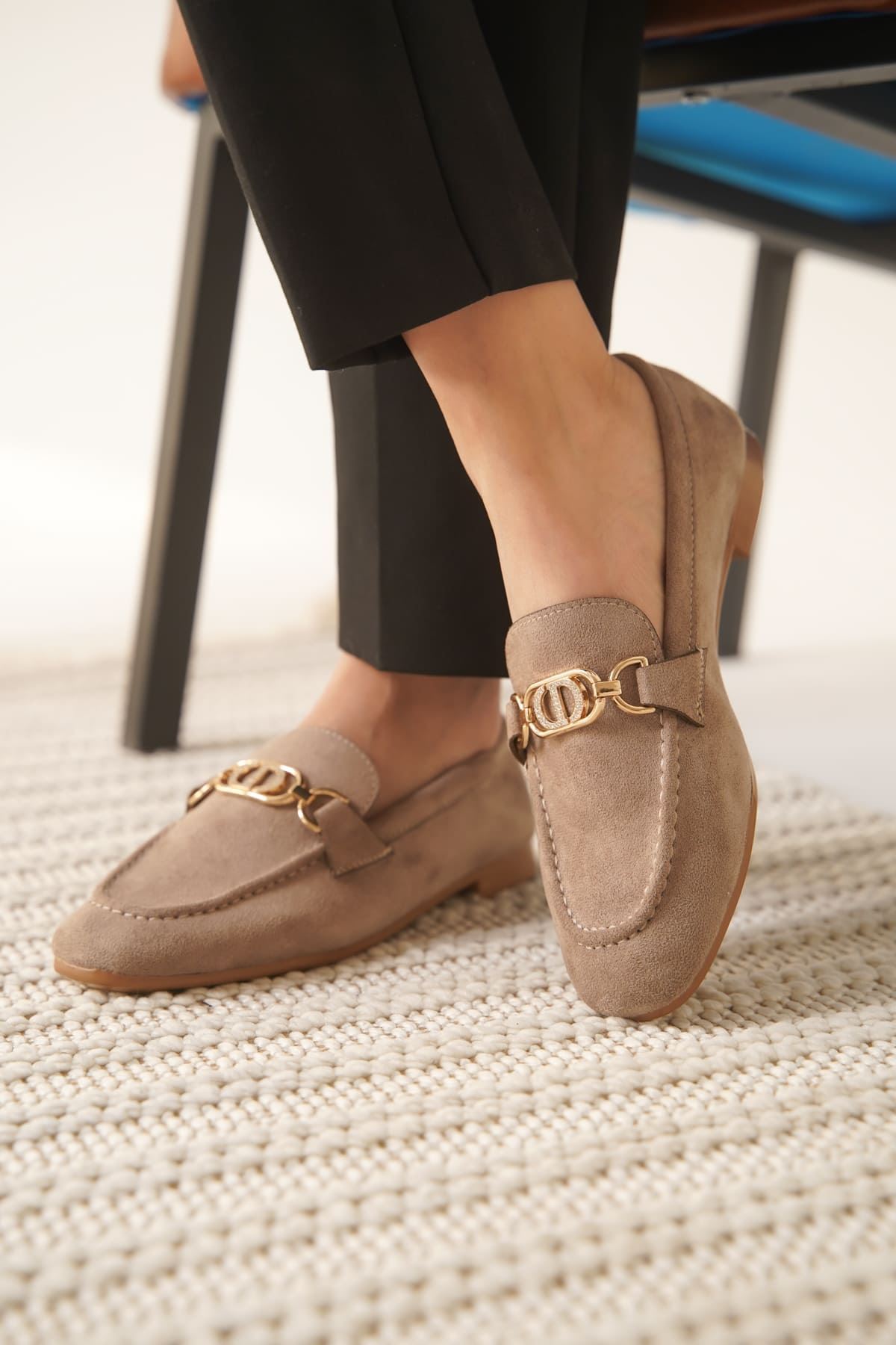 Toka Detaylı Bej Süet Günlük Loafer Ayakkabı TR10MS04D