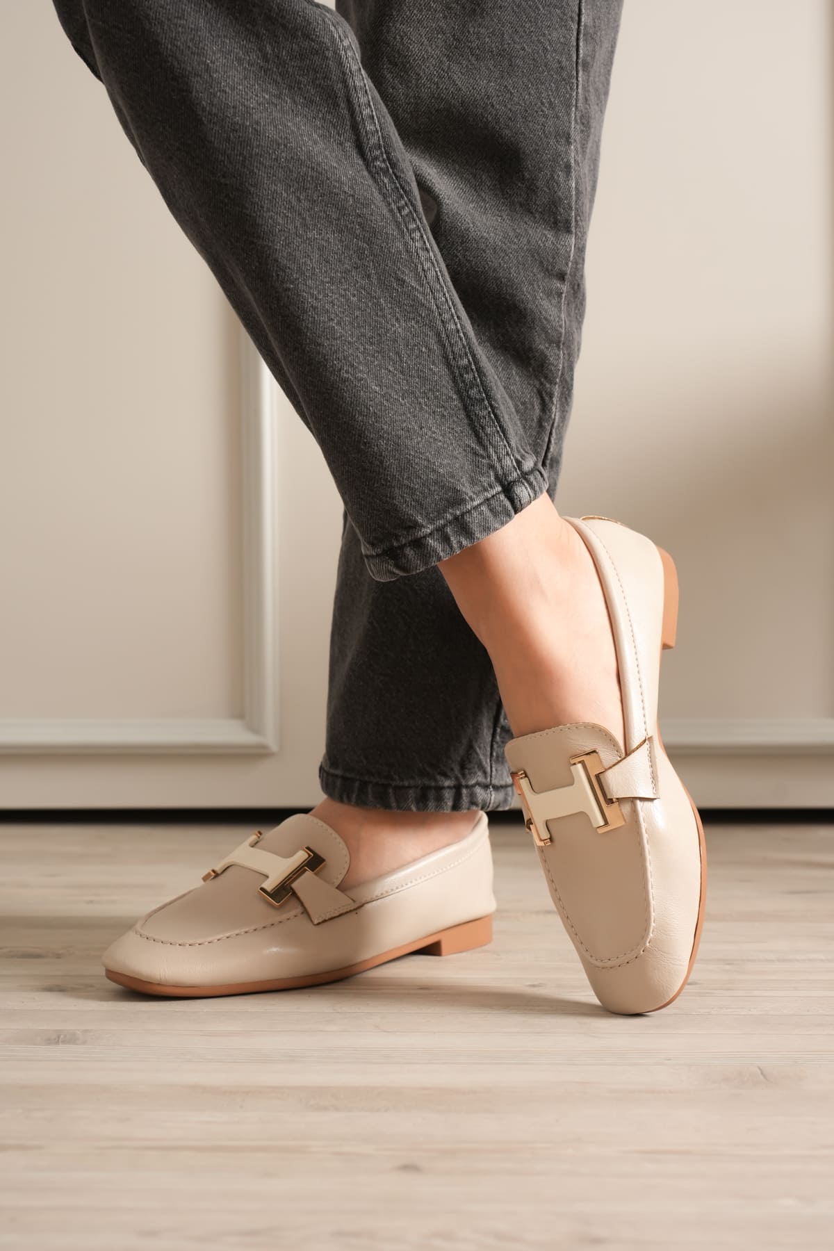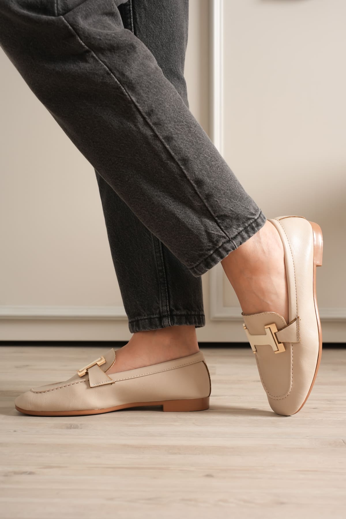 Kadın Bej Şık Tokalı Günlük Ayakkabı TR27MS05B