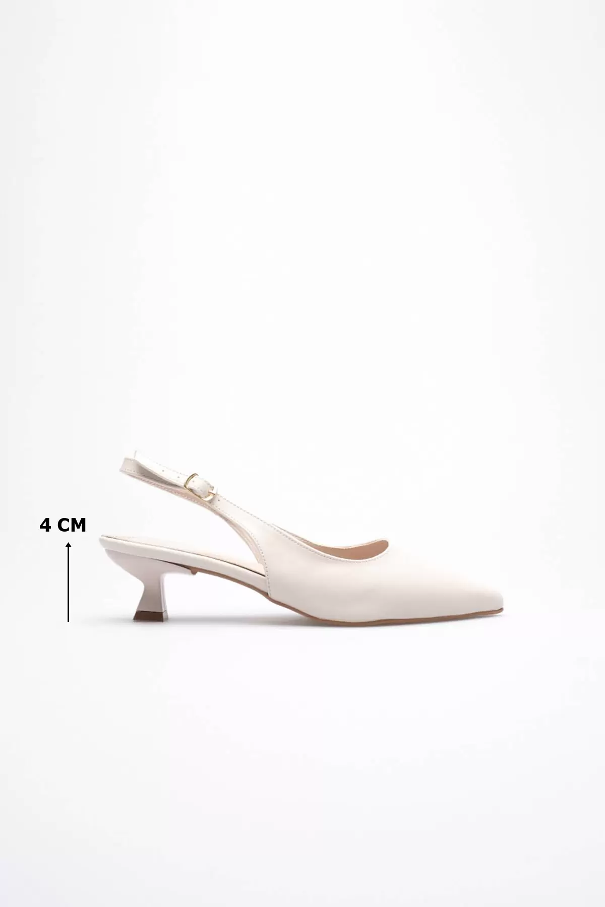 Kadın Bej Sivri Burun Slingback Kısa Topuklu Ayakkabı TR20MS04B