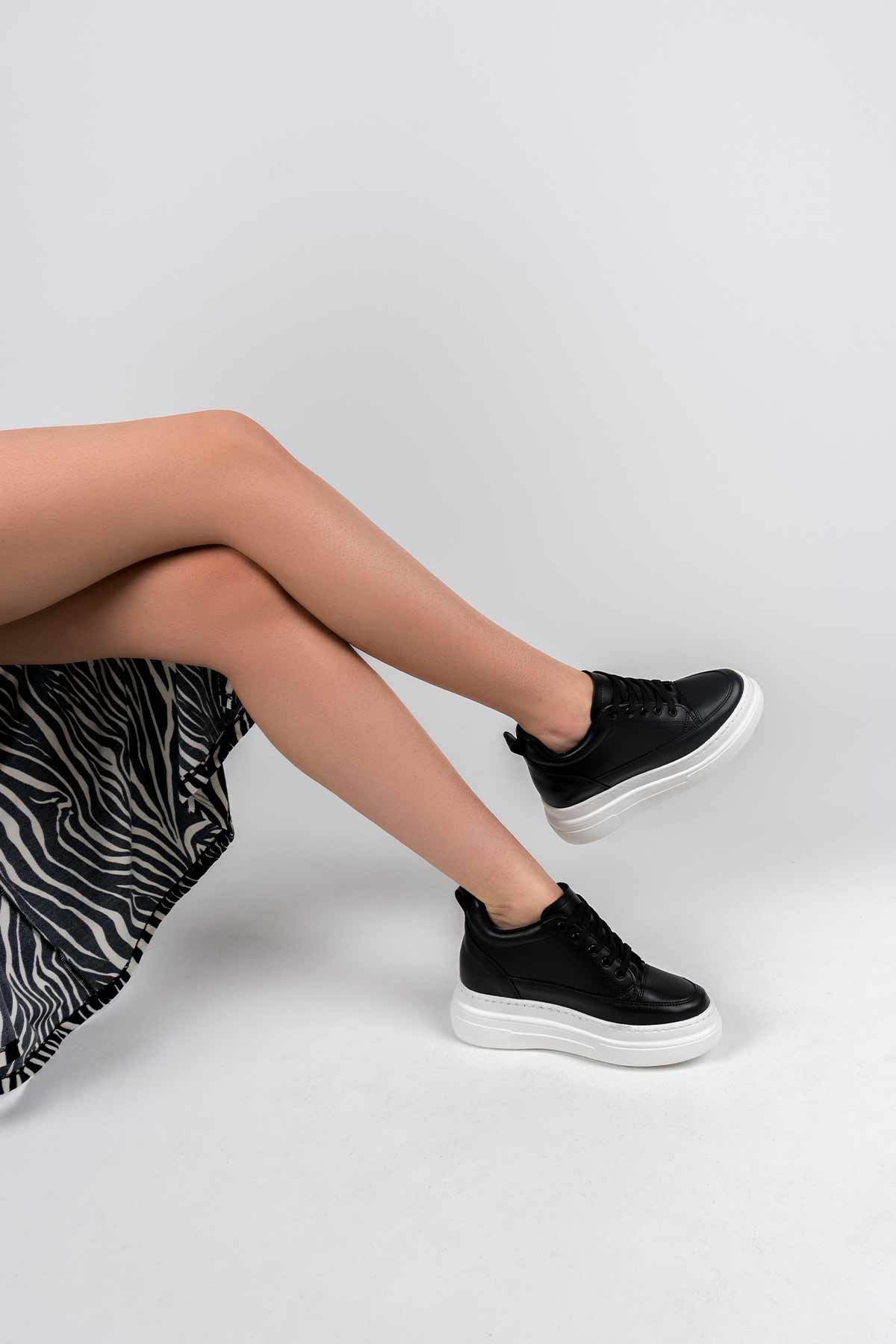 Kadın Siyah Tabanlı Siyah Gizli Topuklu Sneaker TR04MS01D