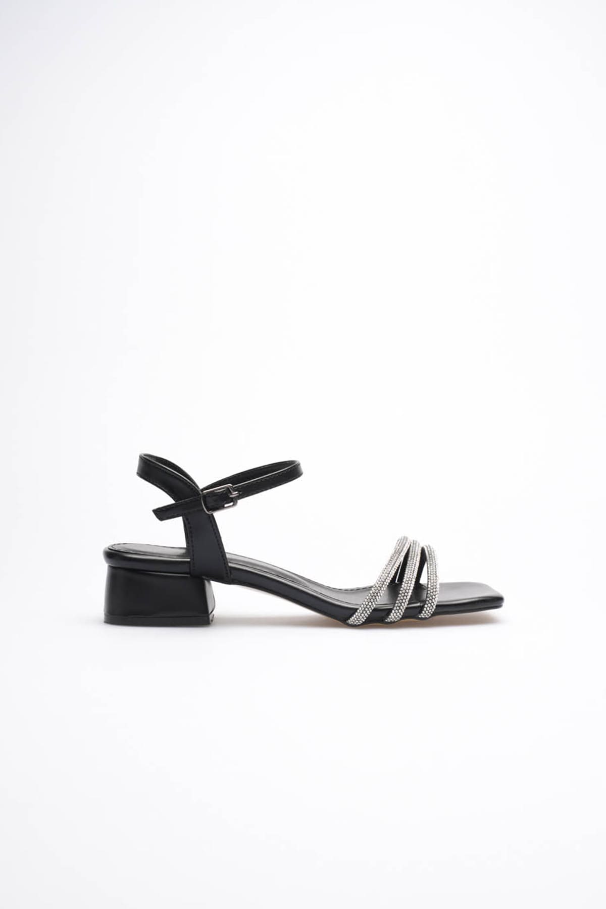 Kadın Siyah Taş Detaylı Kalın Topuklu Şık Sandalet TR20MY26A