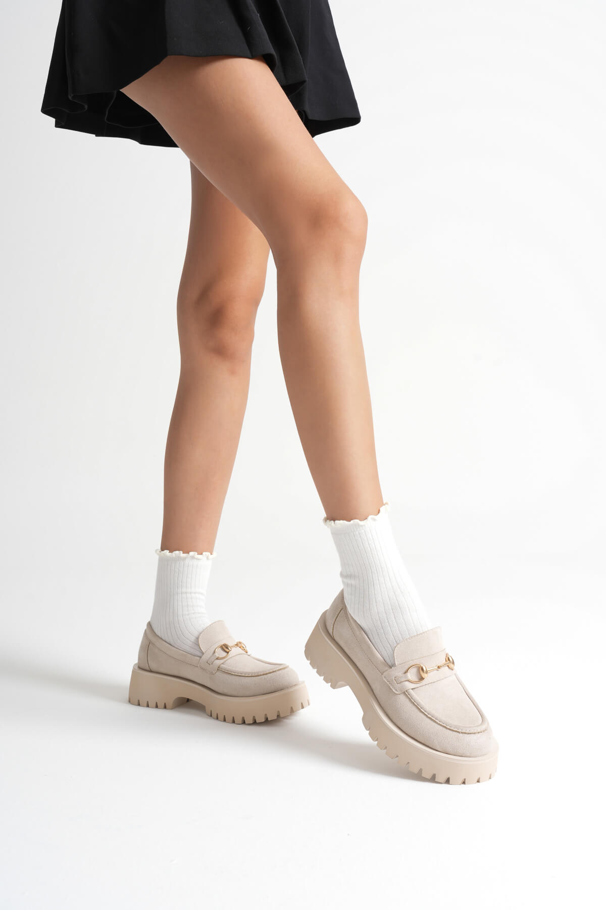 Toka Detaylı Bej Süet Günlük Loafer Ayakkabı TR10MS04D
