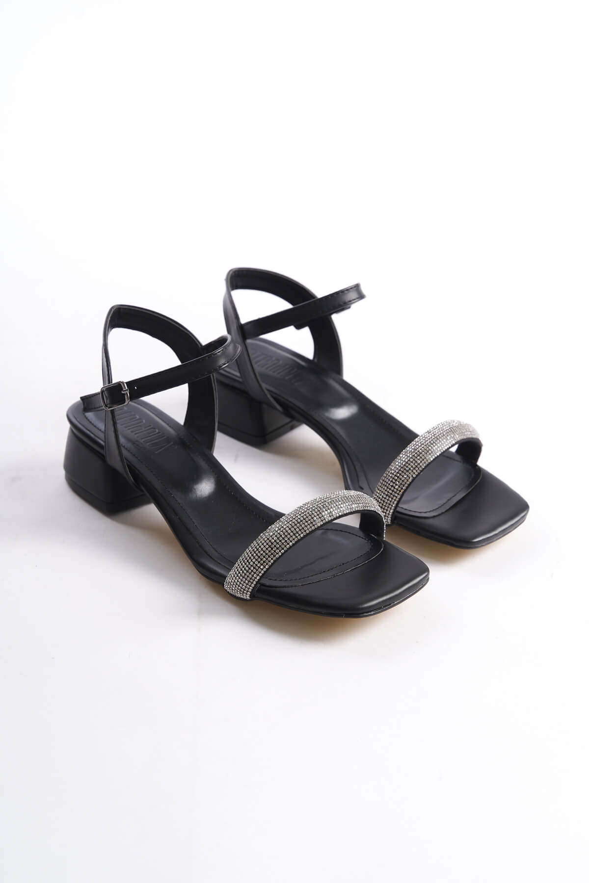 Kalın Topuklu Taşlı Kadın Siyah Sandalet TR20MY12A