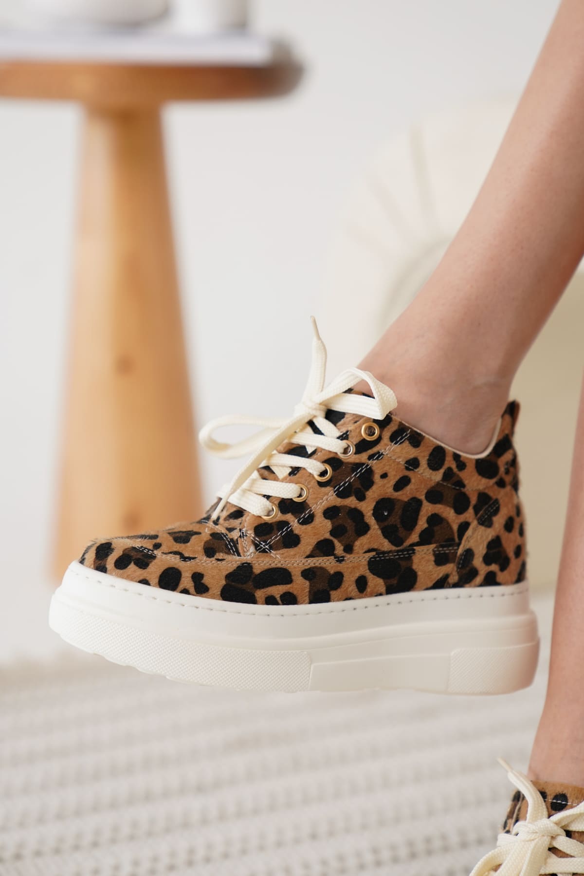 Kadın Gizli Topuk Beyaz Taban Leopar Spor Ayakkabı TR10MS01H