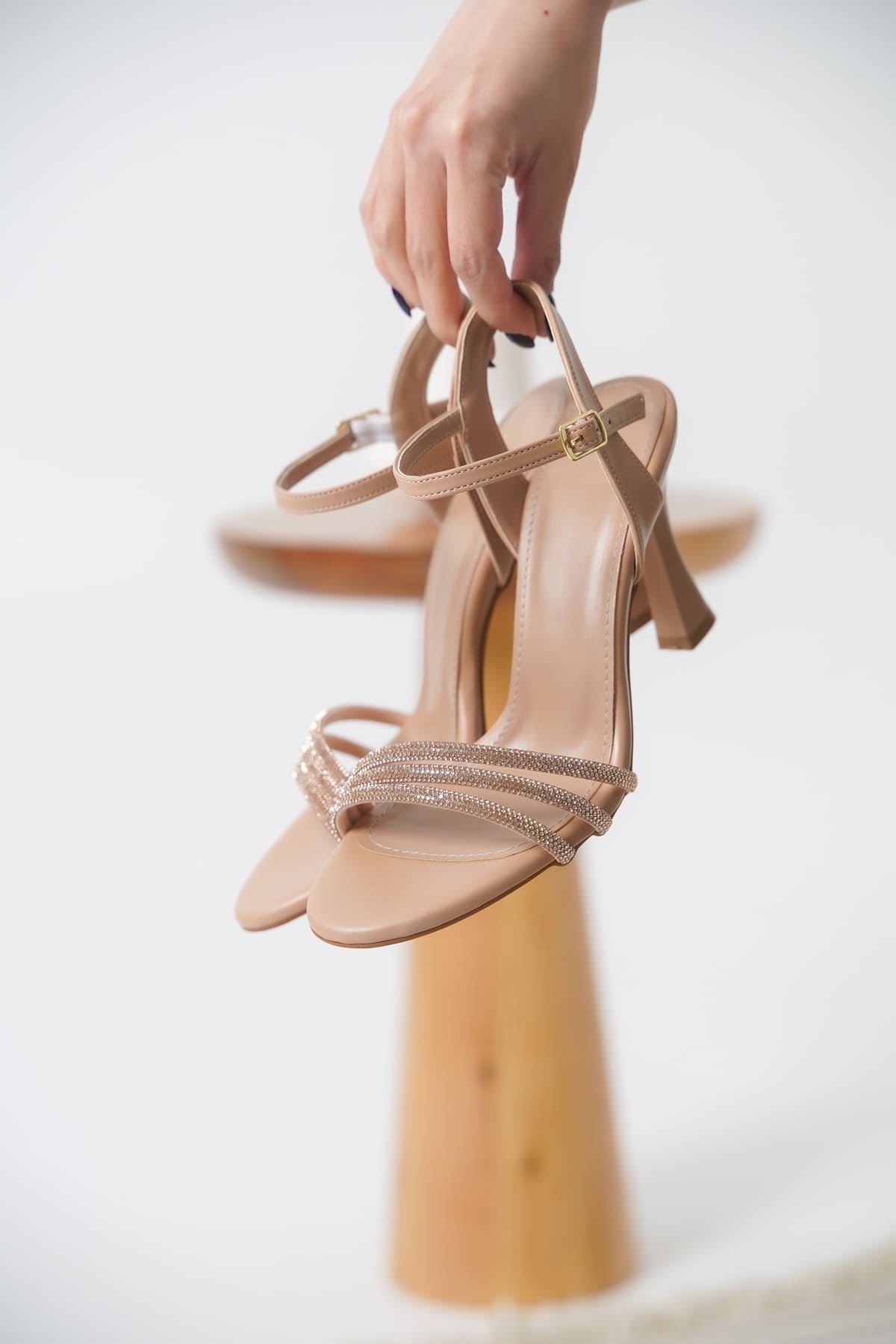 Kadın Nude Taş Detaylı Kalın Topuklu Şık Sandalet TR20MY26D