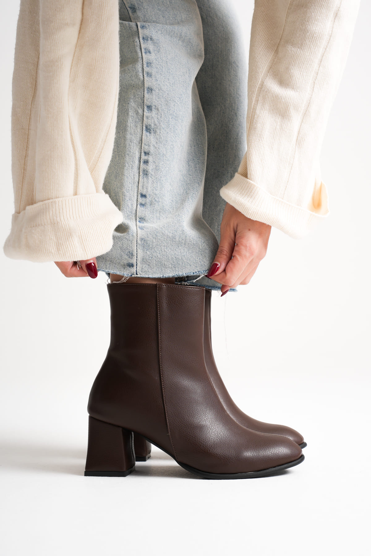 Acı Kahve Kalın Topuklu Streç Bot TR08MK01C