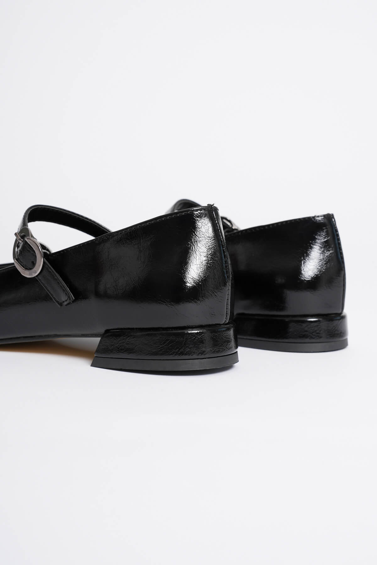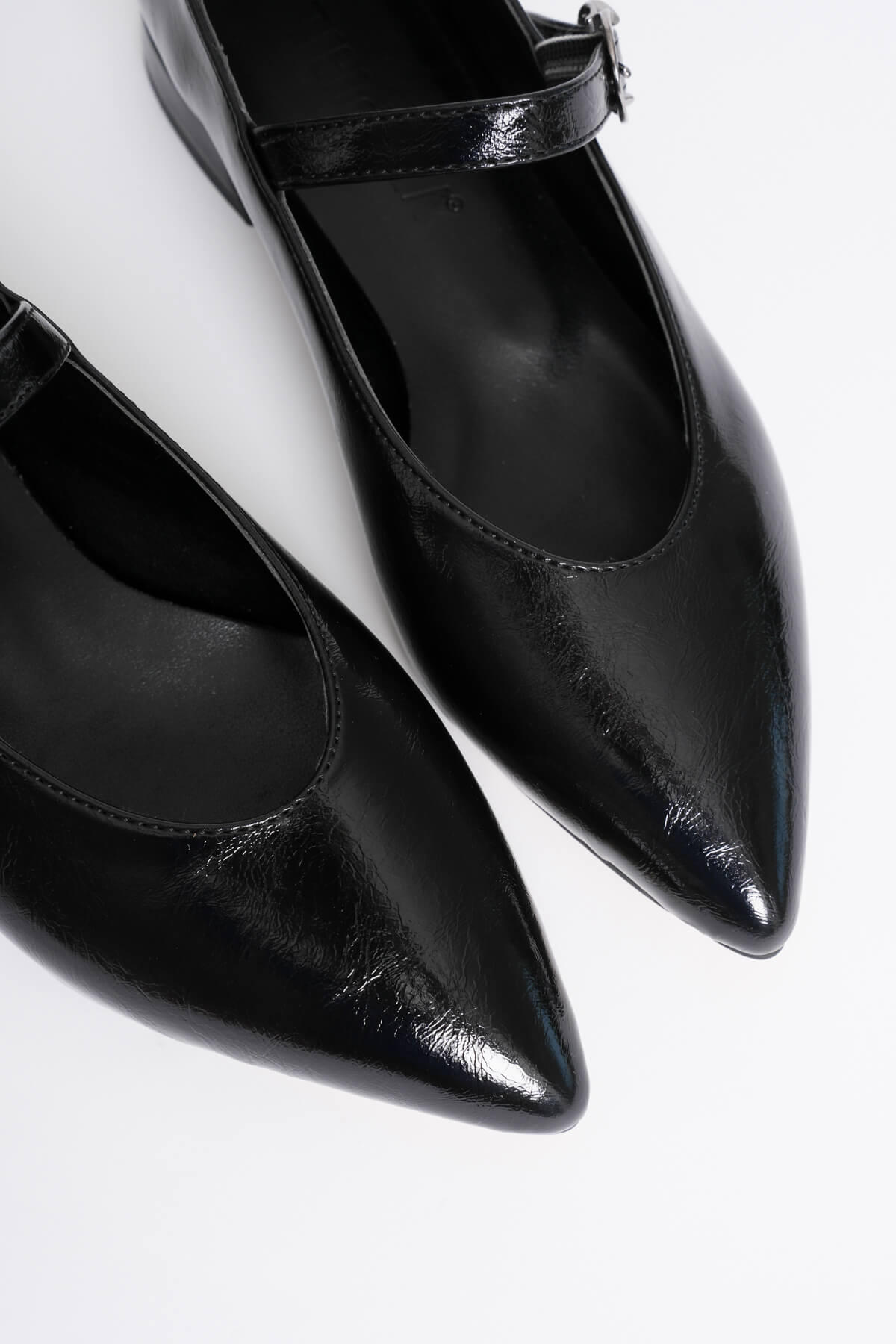 Kadın Siyah Kırışık Rugan Sivri Burun Slingback Kısa Topuklu Ayakkabı TR20MS04C