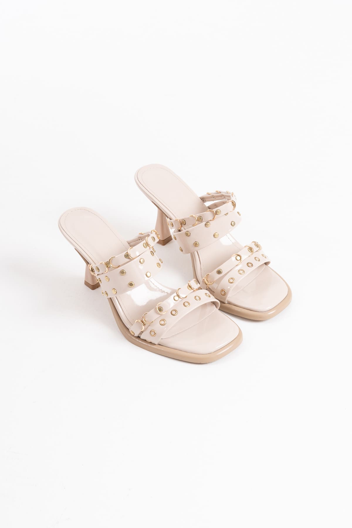 Bej Taşlı İnce Bantlı Kadın Topuklu Terlik TR20MY01C