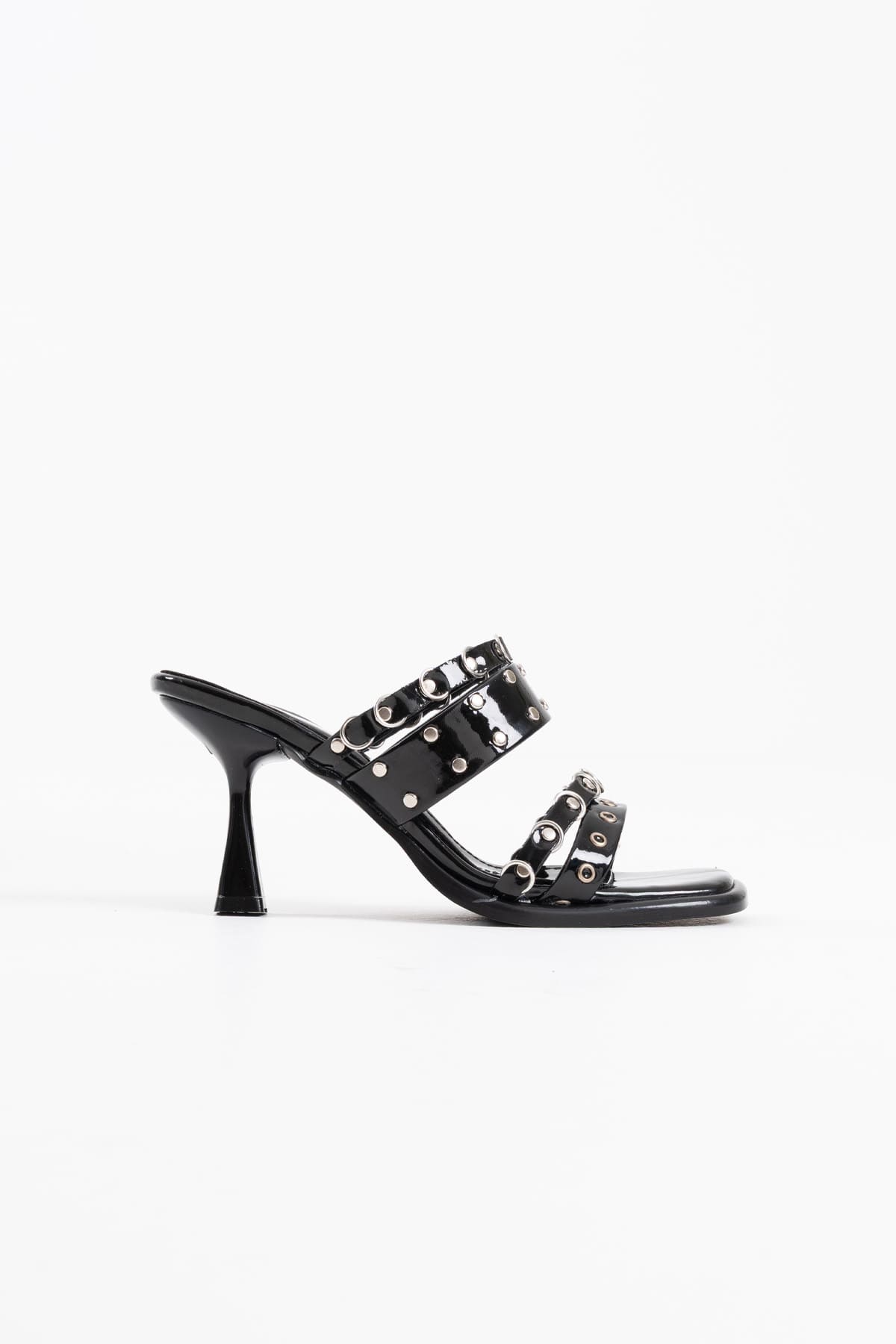 Siyah Taşlı İnce Bantlı Kadın Topuklu Terlik TR20MY01A