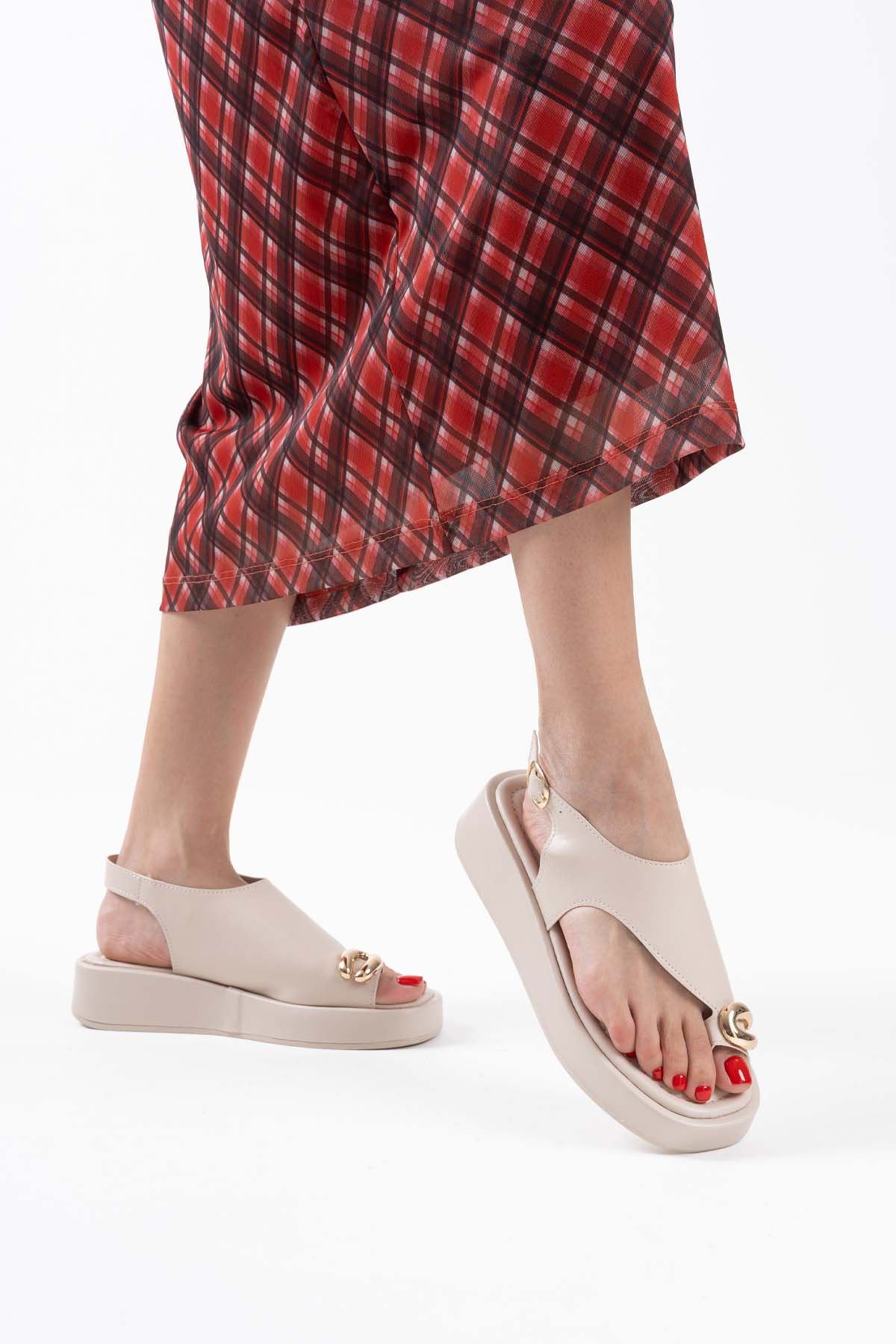 Kadın Bej Cilt Toka Detaylı Sandalet TR17MY03C