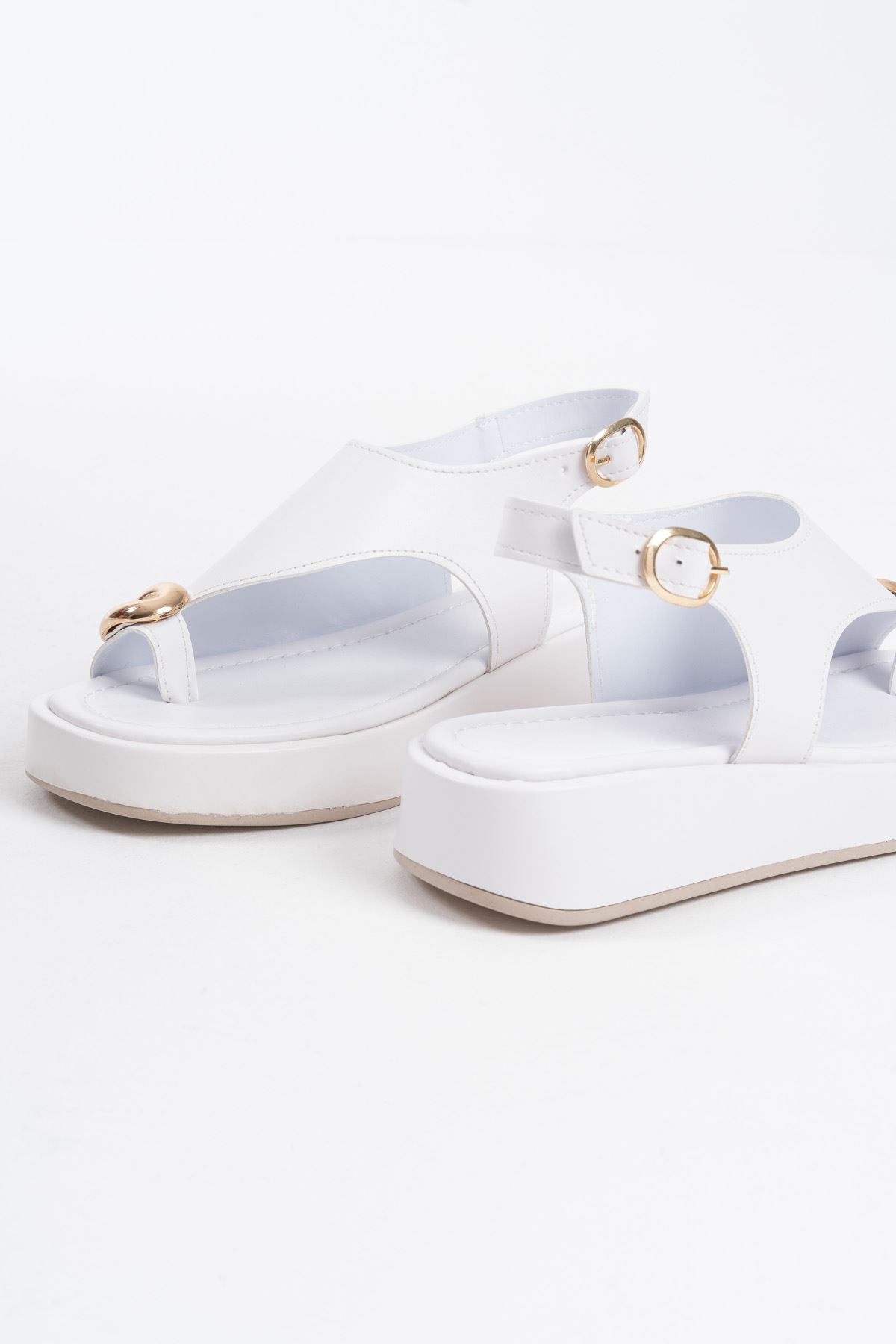 Kadın Beyaz Cilt Toka Detaylı Sandalet TR17MY03B