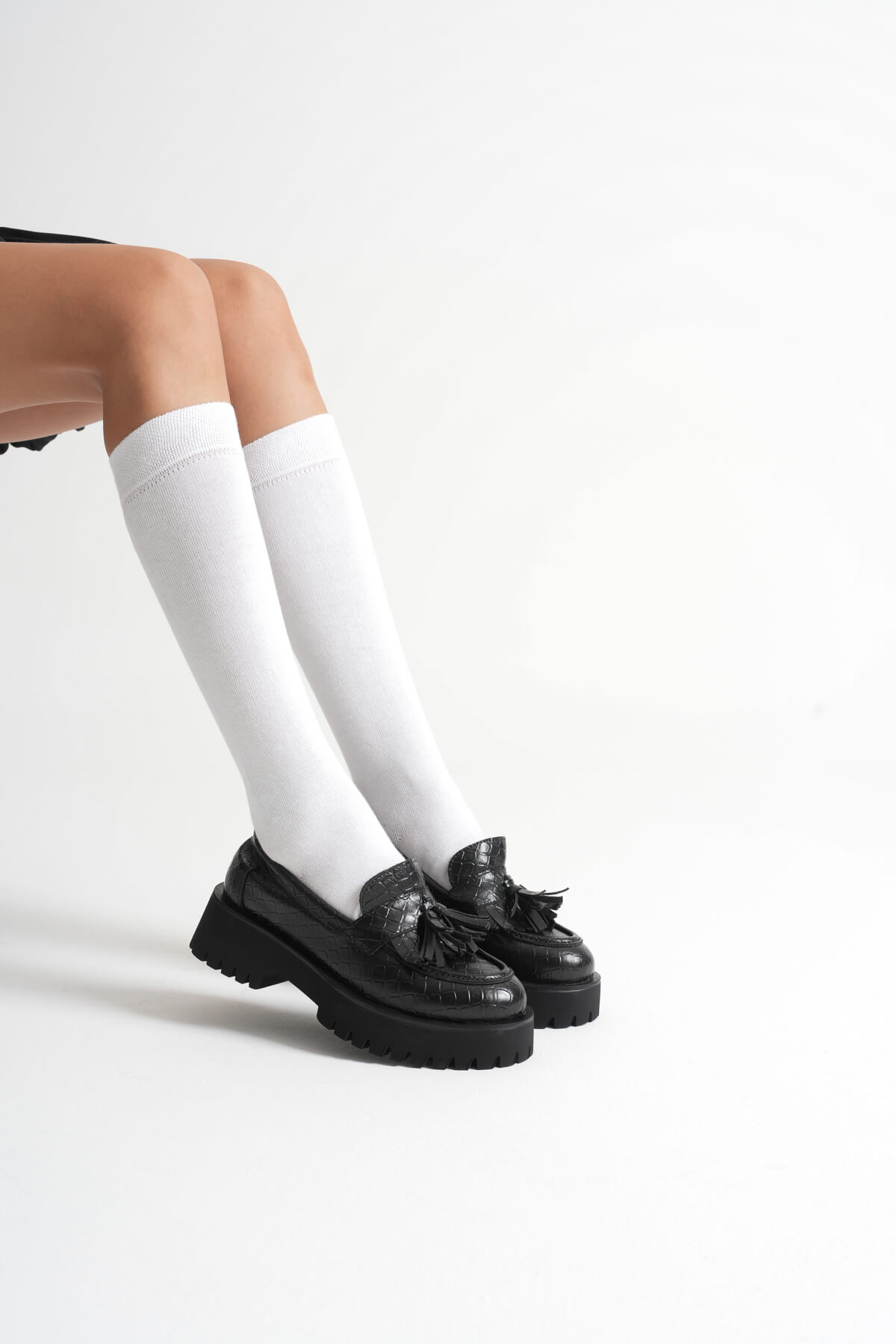 Kadın Günlük Siyah Kroko Loafer Ayakkabı TR10MS02G