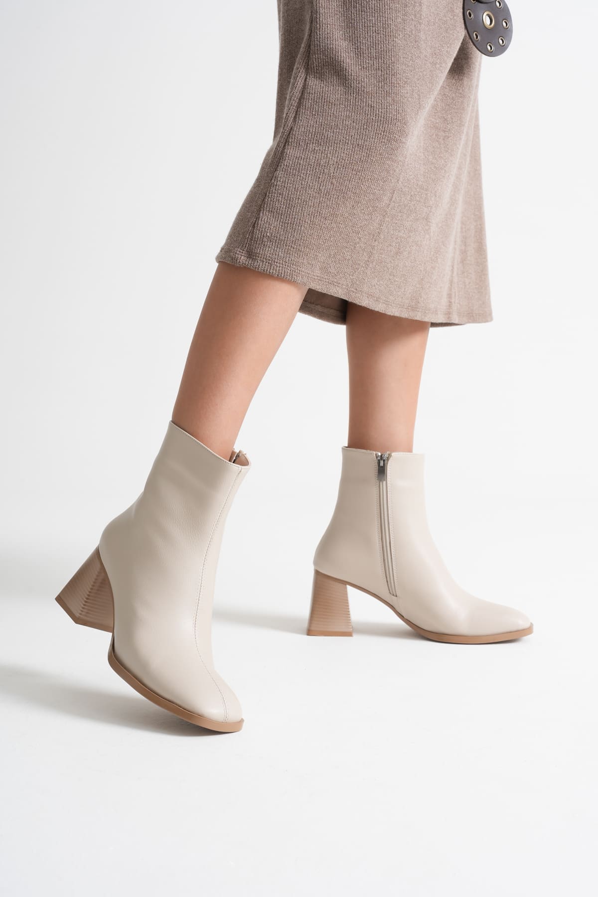 Kadın Kışlık Bej Kalın Topuklu Bot TR12MK04D