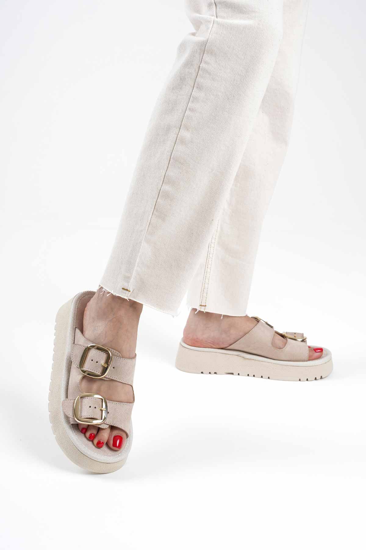 Süet Bej Taşlı Kadın Terlik TR35MY05B