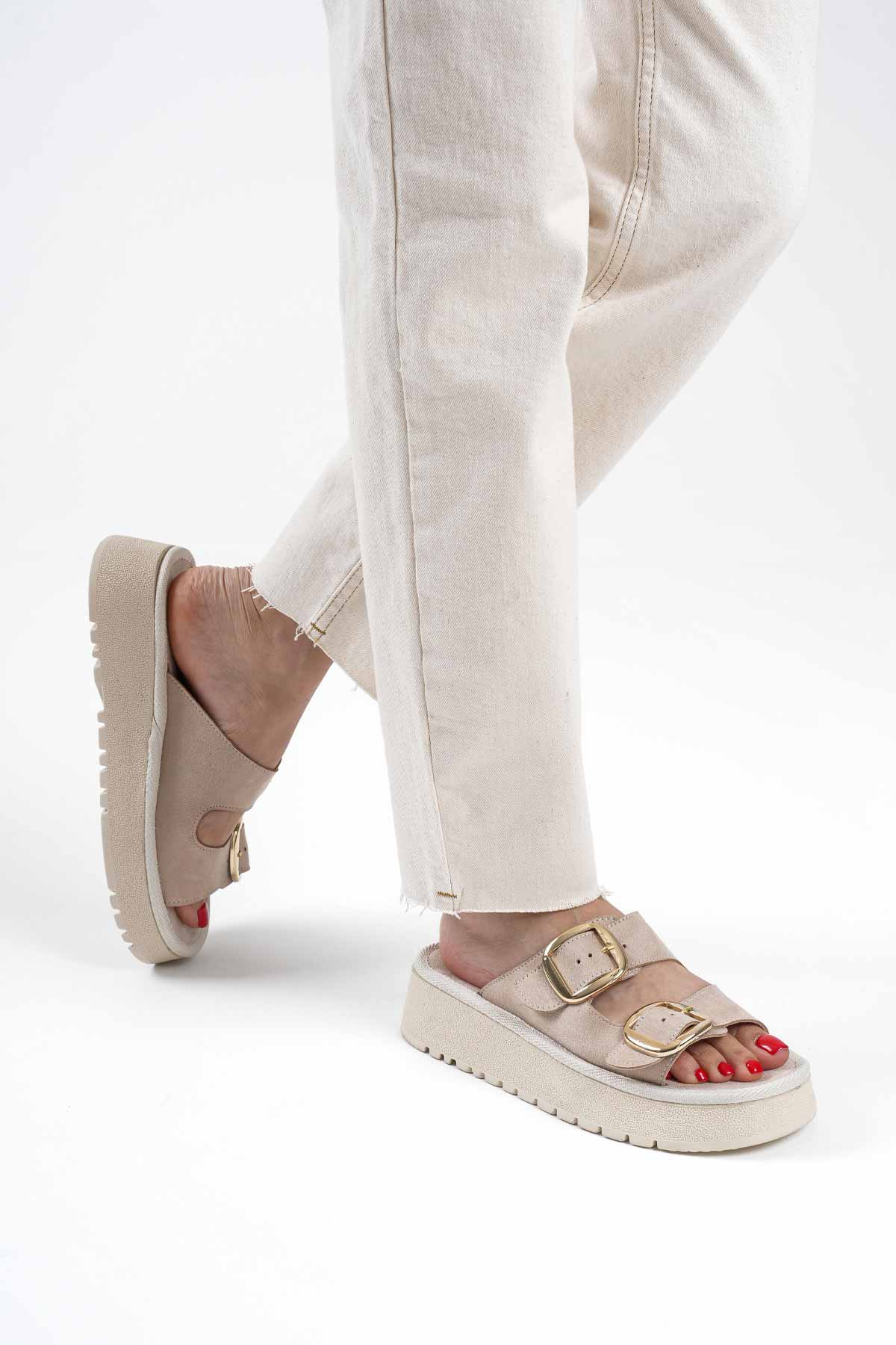 Bej Hakiki Deri Terlik TR31MY62C