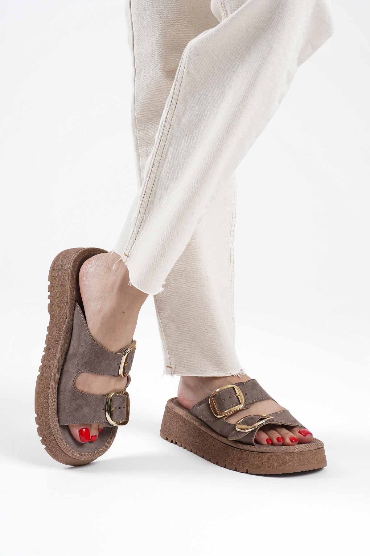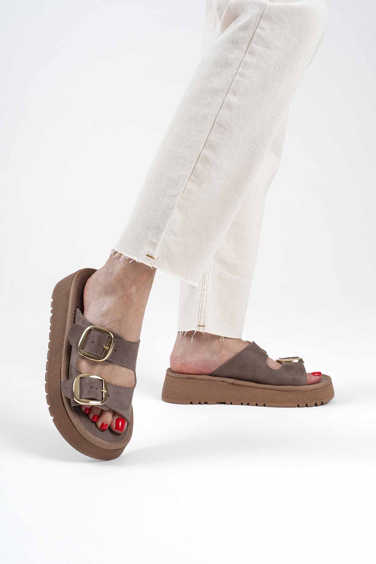 Süet Bej Taşlı Kadın Terlik TR35MY05B