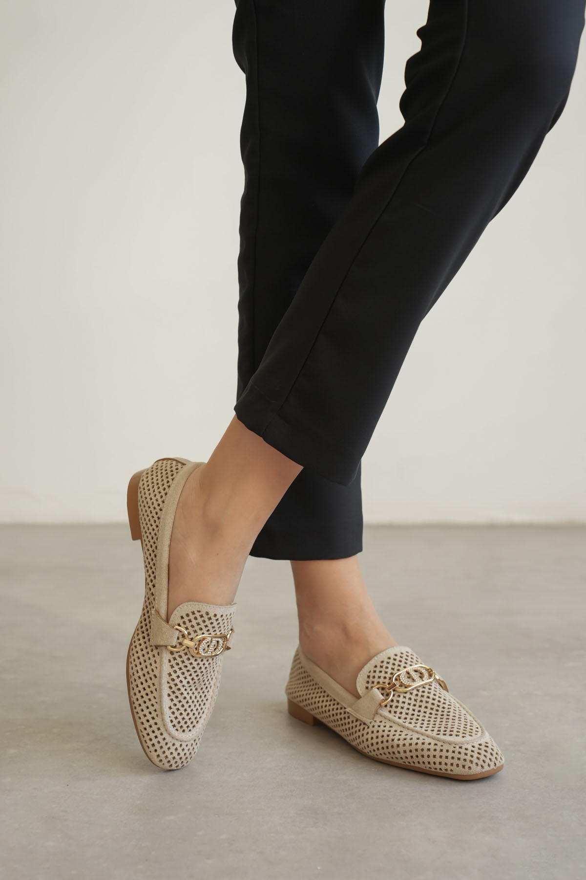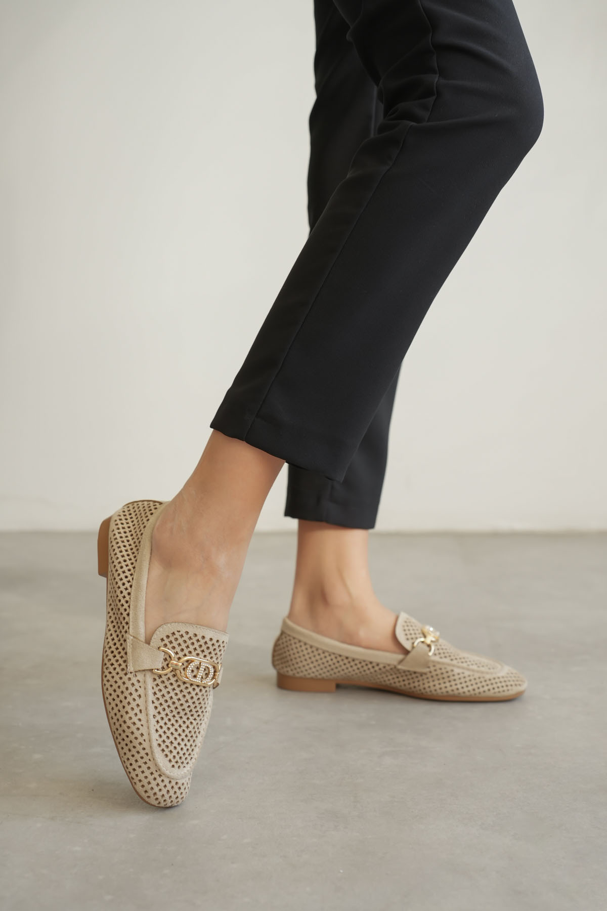 Toka Detaylı Bej Süet Günlük Loafer Ayakkabı TR10MS04D