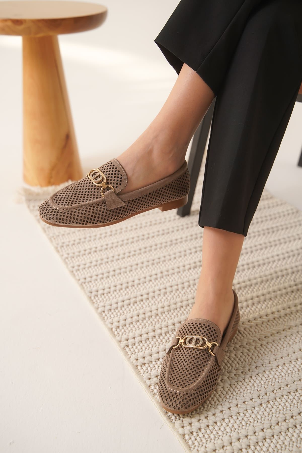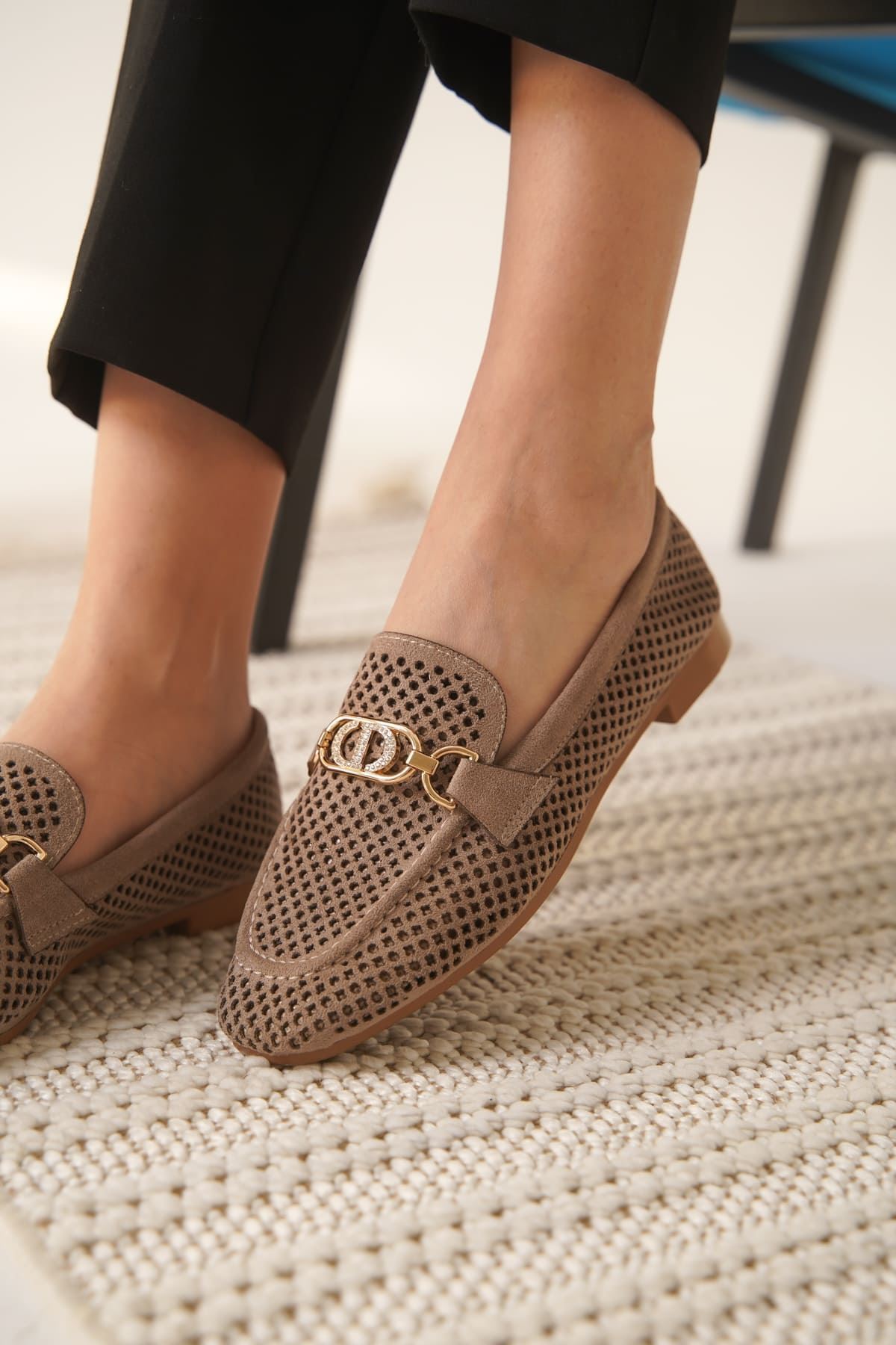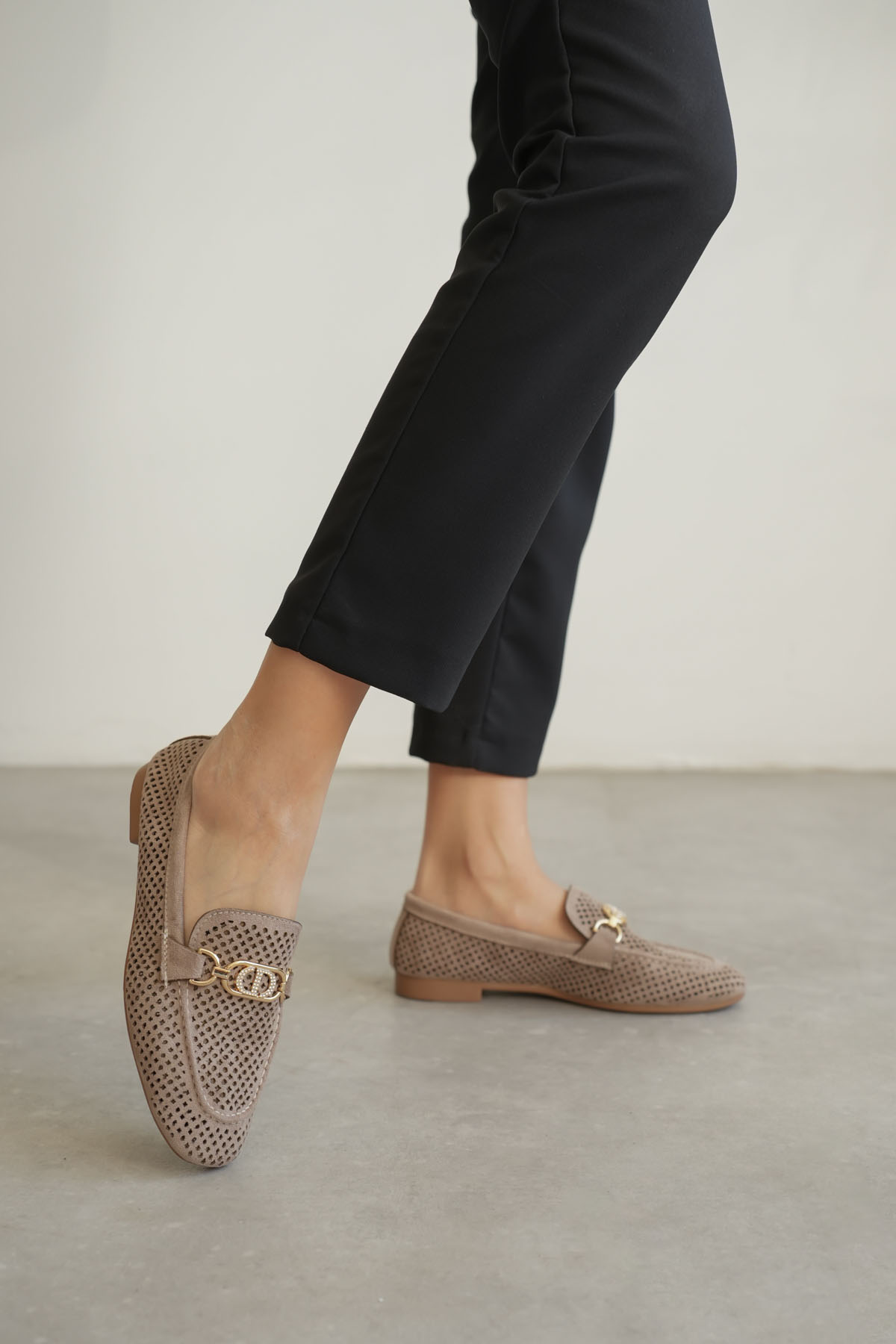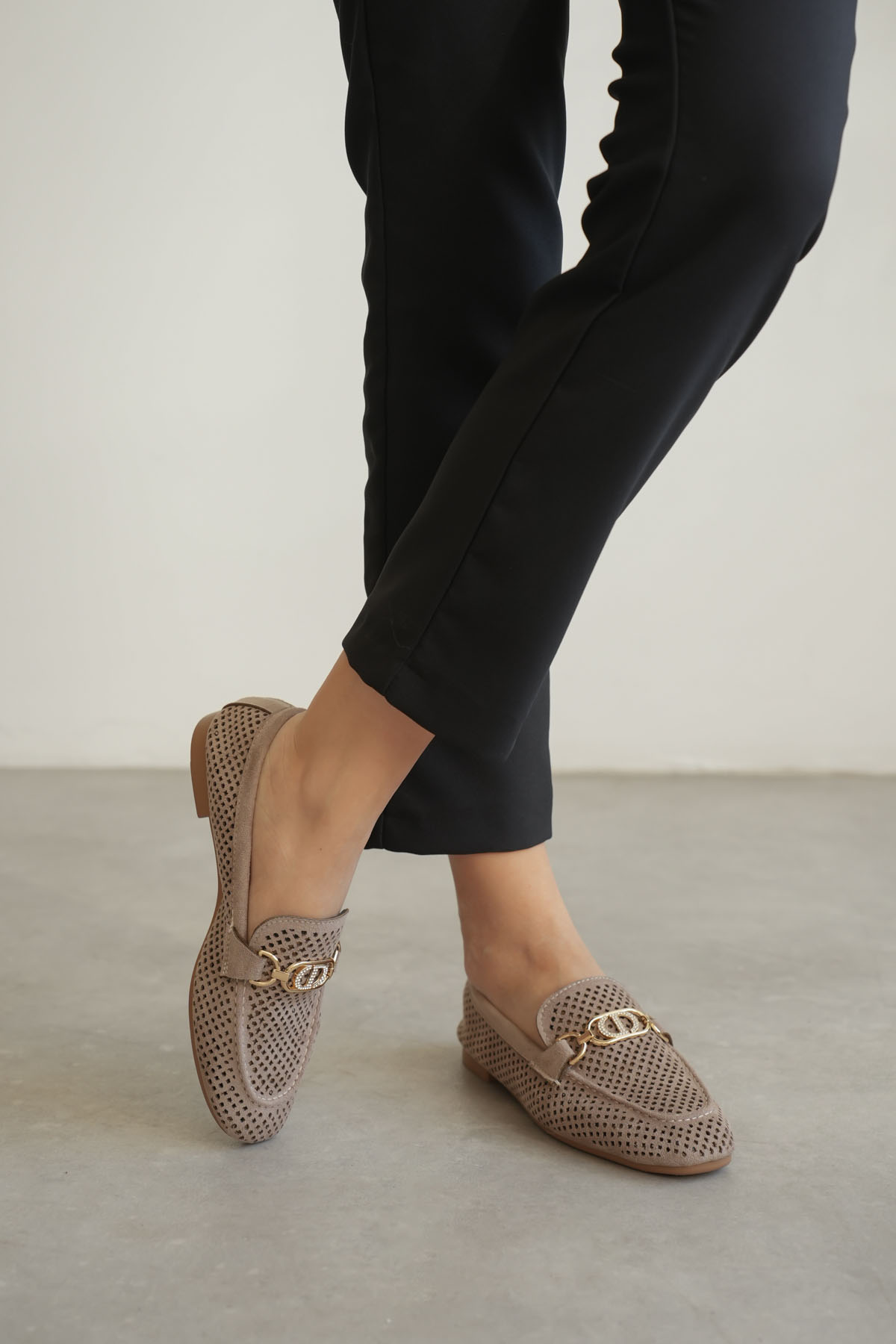 Toka Detaylı Bej Süet Günlük Loafer Ayakkabı TR10MS04D