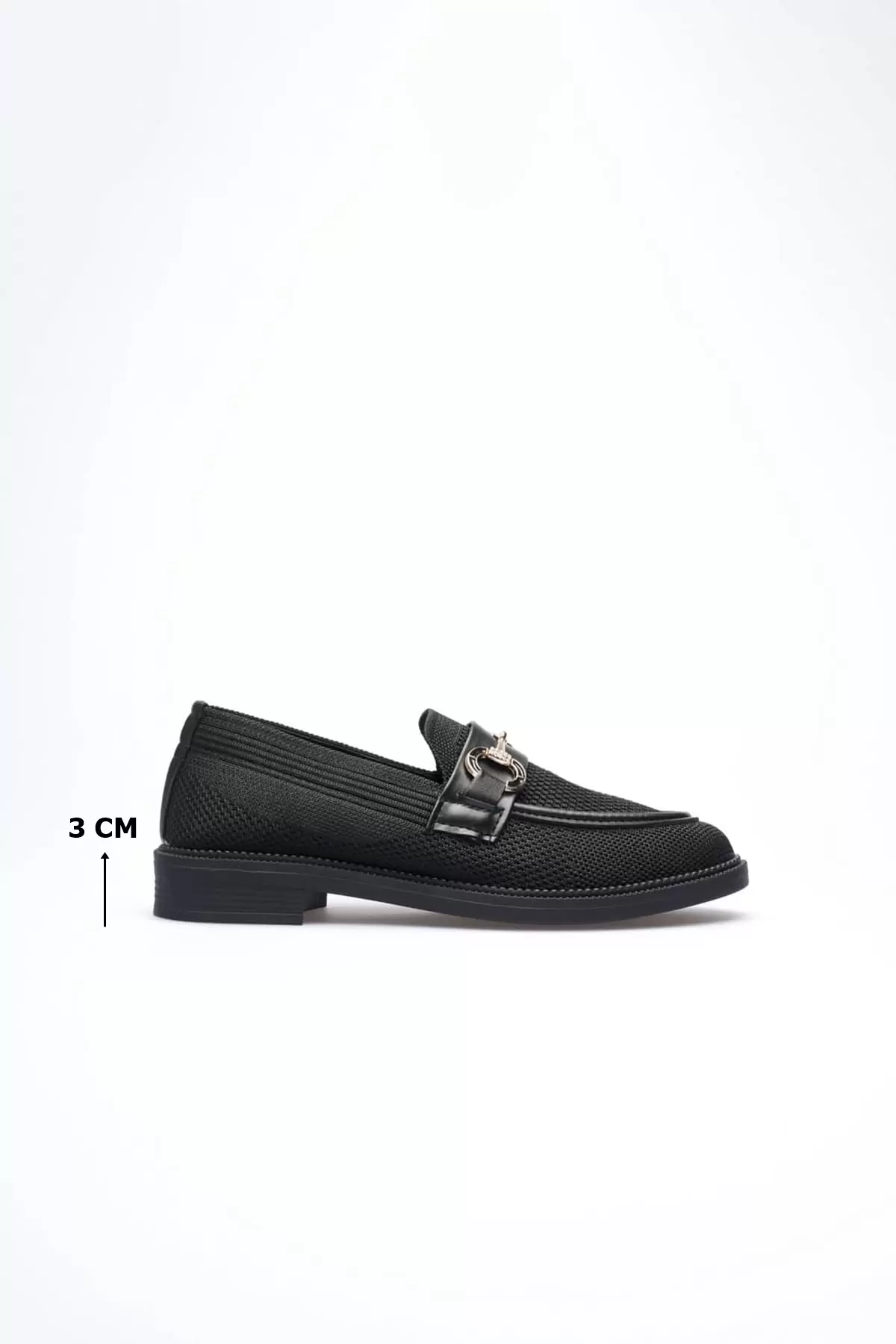 Siyah Kadın Loafer Metal Tokalı Rahat Günlük Ayakkabı TR30MS02A