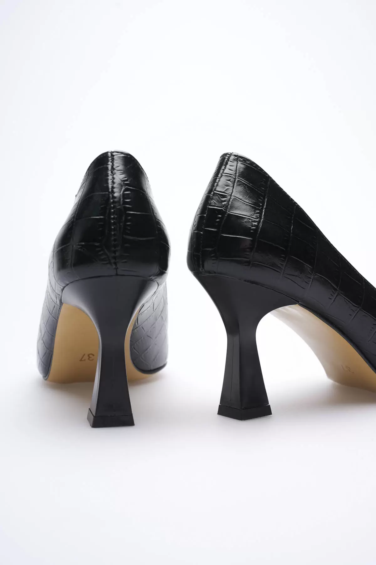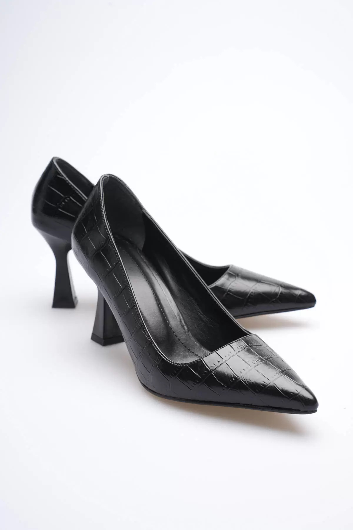Siyah Kroko Sivri Burun Orta Topuklu Kadın Stiletto TR20MS02F