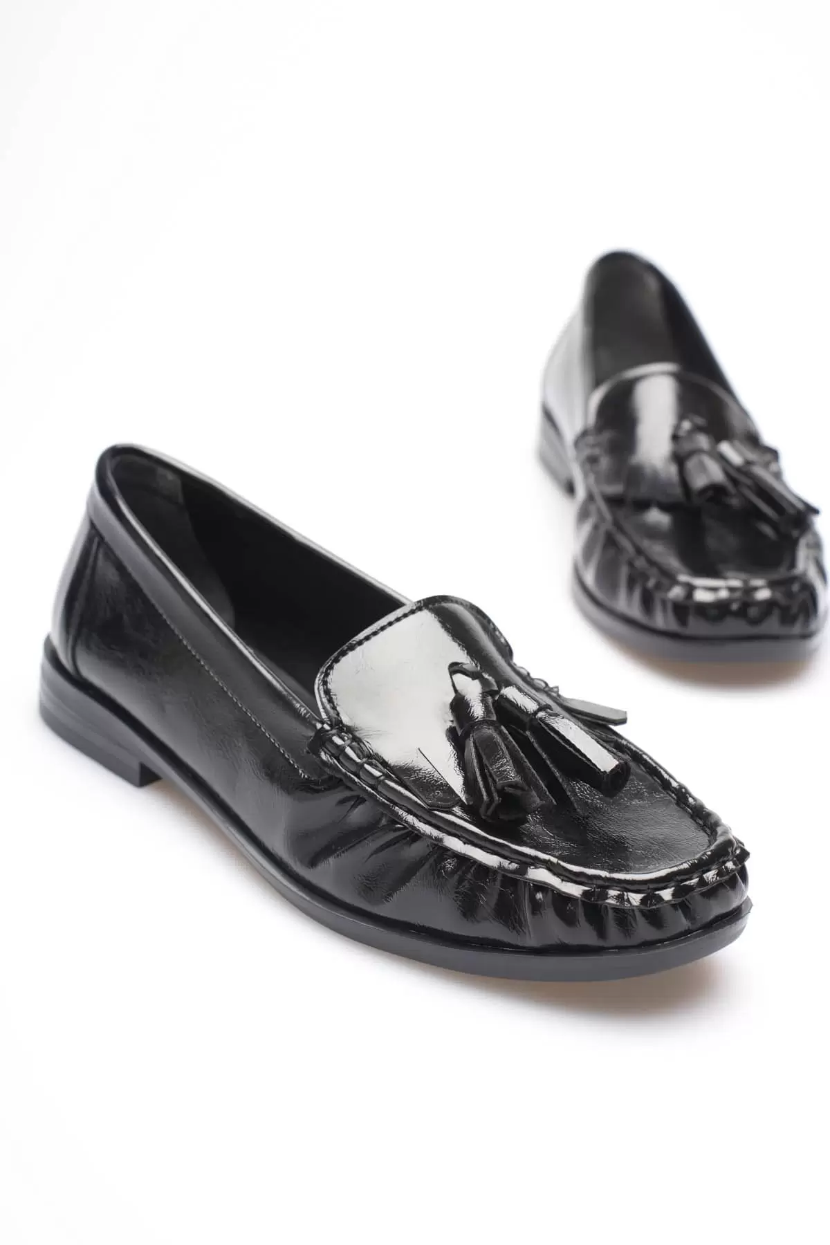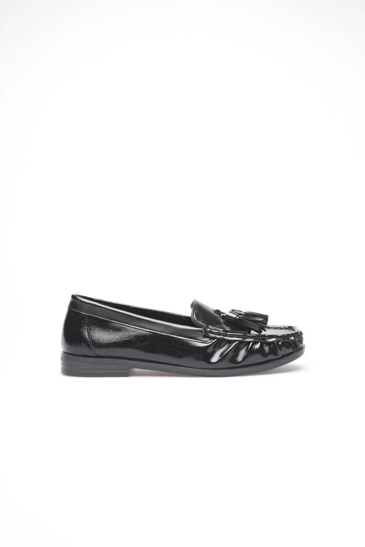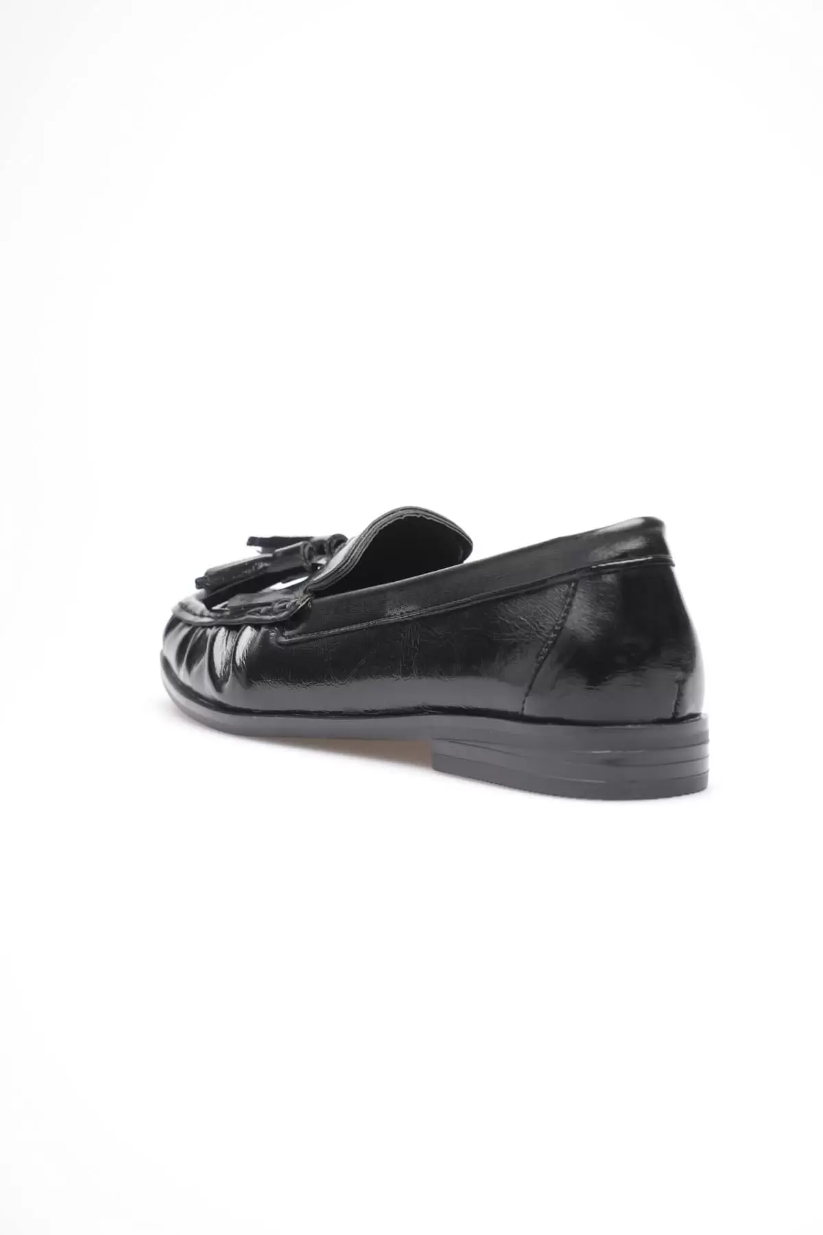 Siyah Rugan Püsküllü Kadın Loafer Ayakkabı TR88MS01A