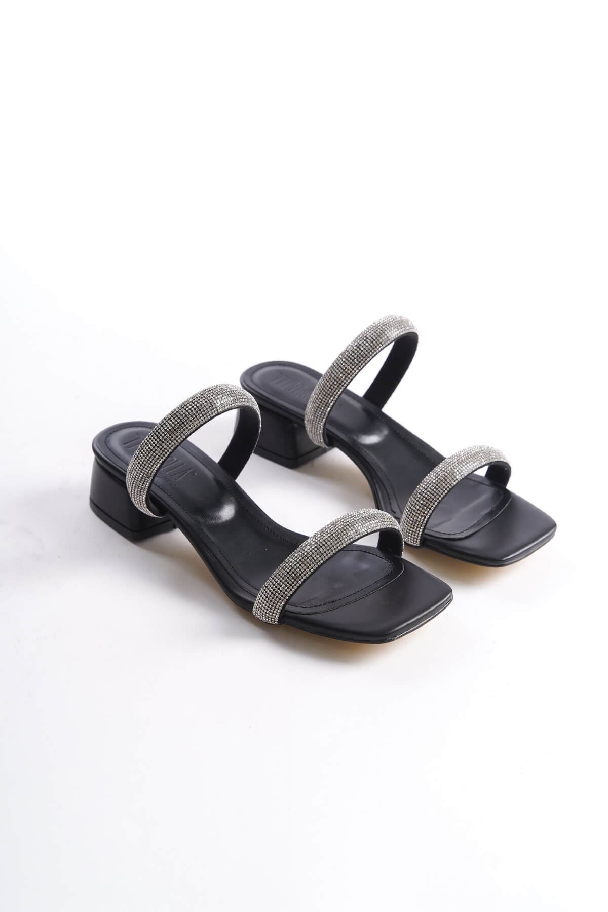Siyah Taşlı İnce Bantlı Kadın Topuklu Terlik TR20MY01A