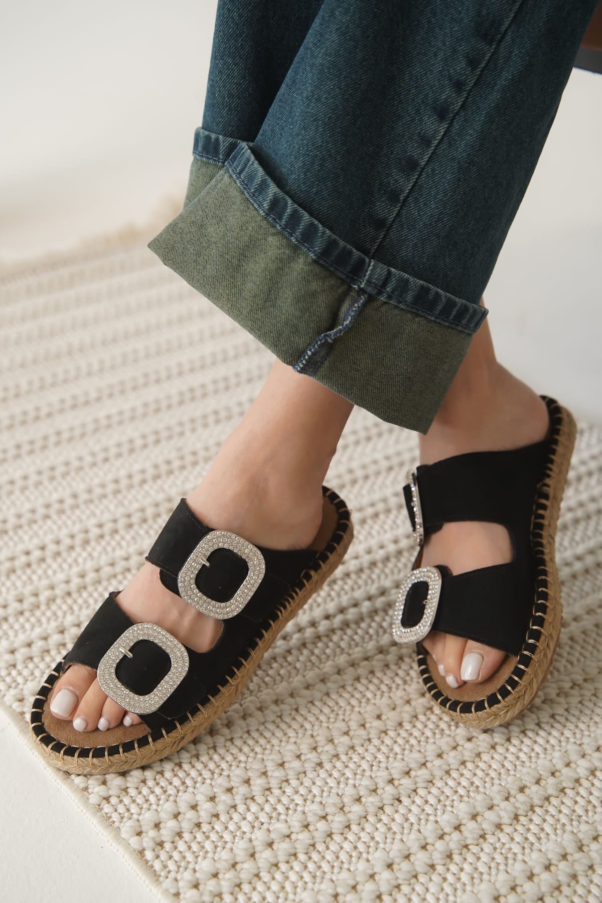 Süet Siyah Taşlı Kadın Terlik TR35MY05A