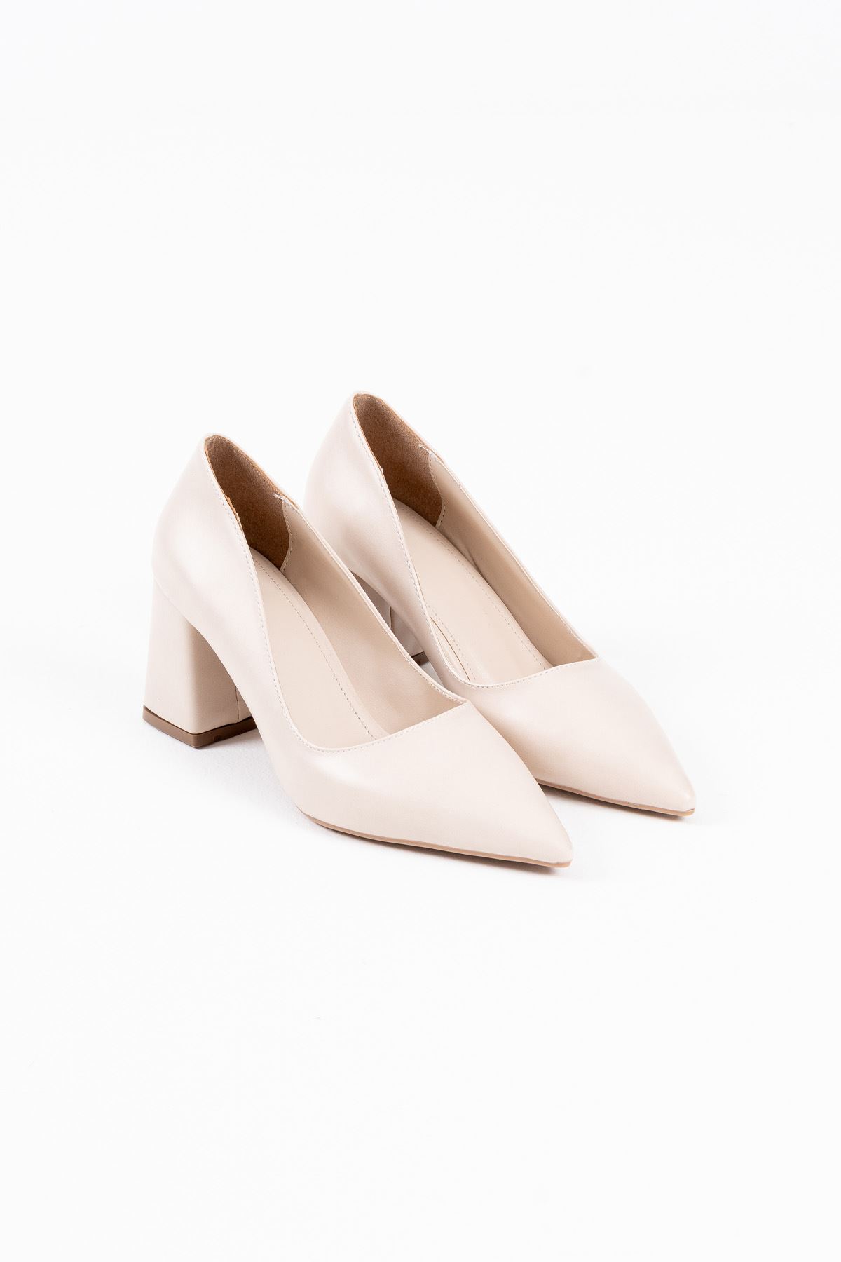 Bej Cilt Kadın Topuklu Ayakkabı TR08MS16B