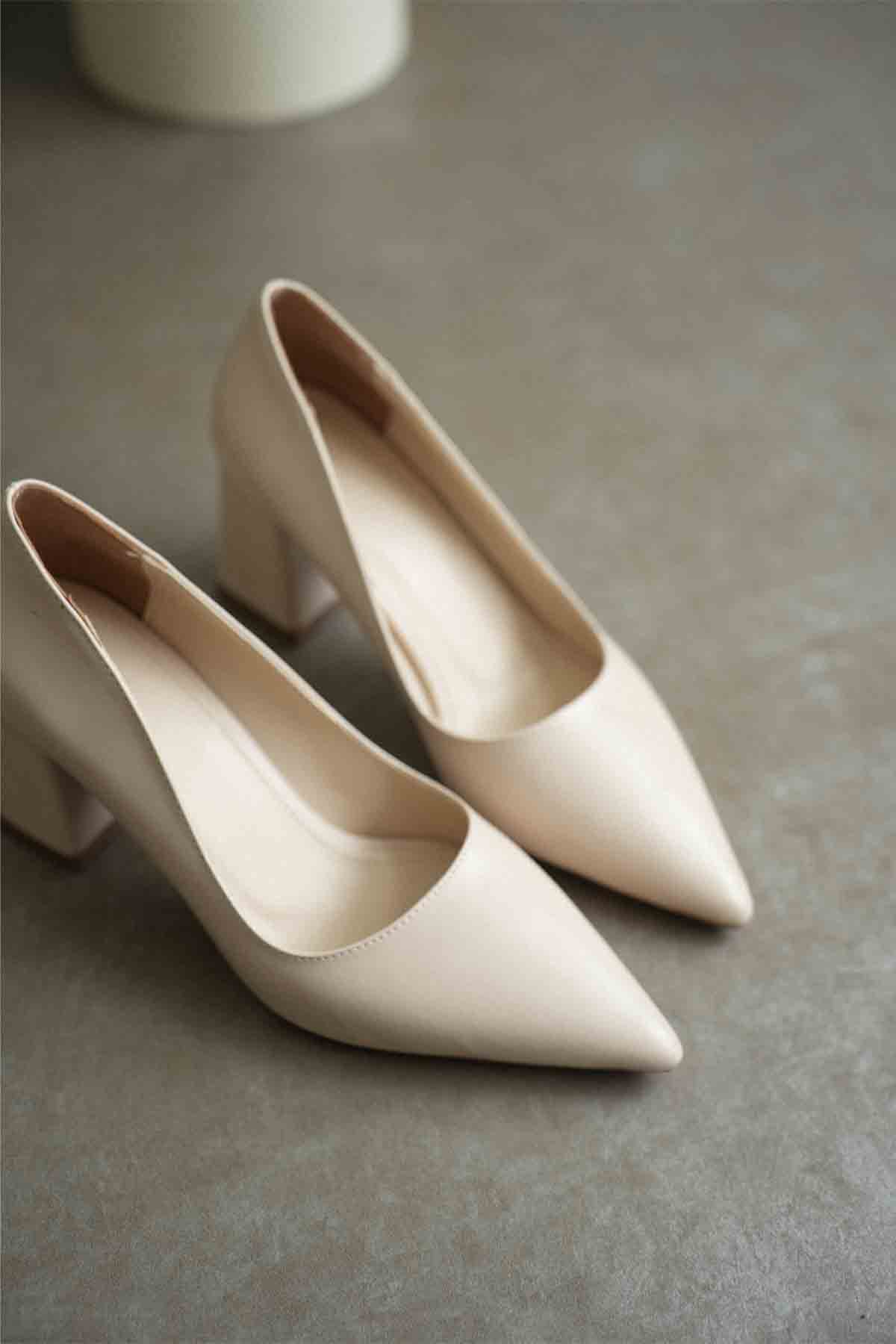 Bej Kadın Günlük Kısa Topuklu Stiletto Ayakkabı TR20MS03B