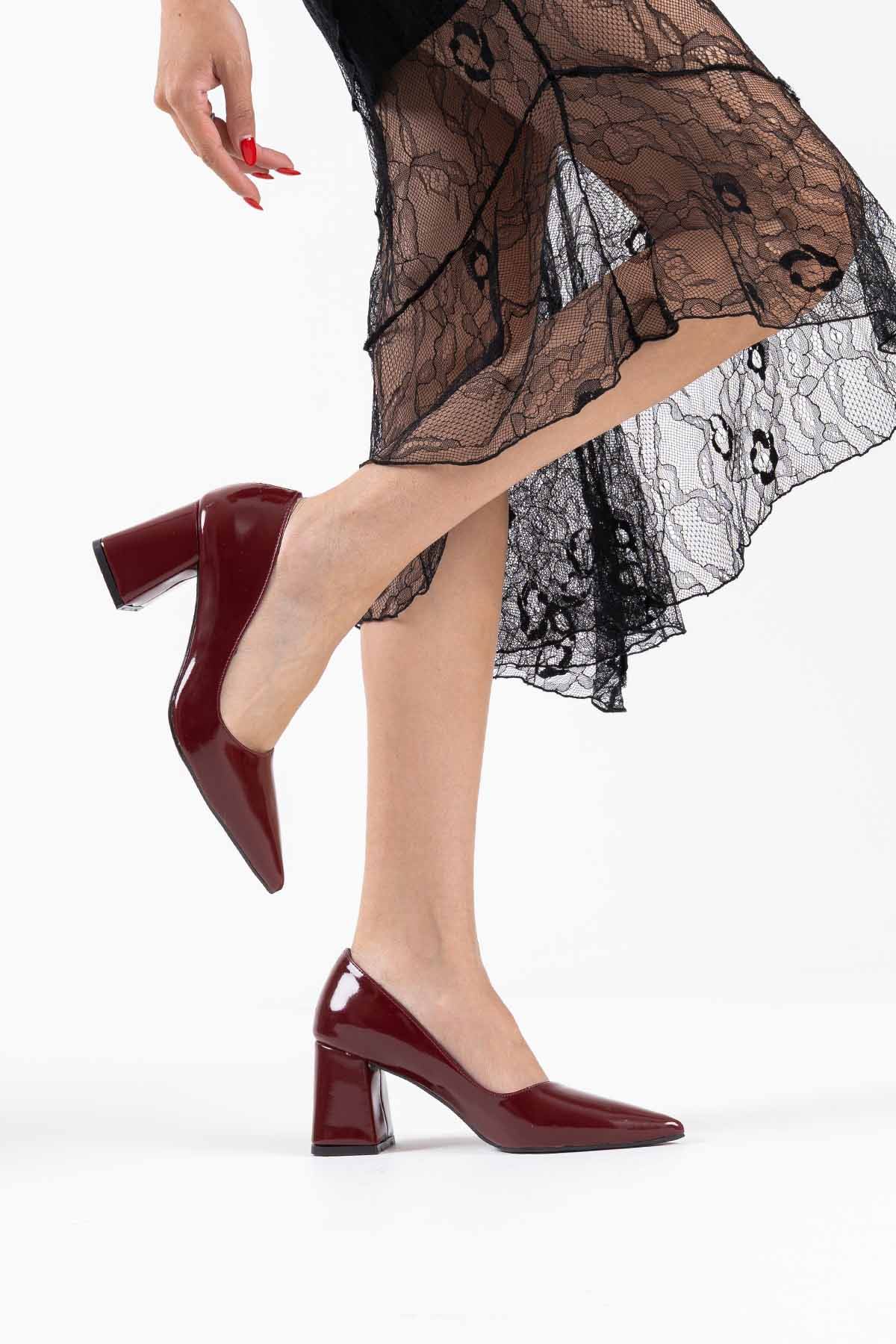 Bordo Rugan Kadın Topuklu Ayakkabı TR08MS16G